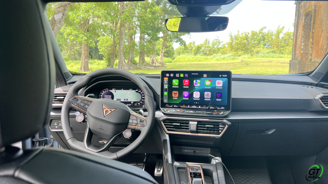Intérieur digne du haut de gamme, lignes agressives pour rappeler que notre époque est plutôt aux SUV Sportifs la Martinique n’échappe pas a cette tendance mondiale… Finalement la CUPRA Formentor à tout pour plaire… Sur nos route, elle avale l’asphalte goulûment en restant collé à l’itinéraire choisi par son pilote et ne bronche pas d’un centimètre sauf à rattraper quelques erreurs de placements trop risqués avec ses aides à la conduite… Le confort visuel et le confort de tenue de route rappelle les impératifs de la marque ibérique soit : proposer une belle auto agressive non sans rappeler qu’elle est faite aussi pour accélérer fort même avec ses 150ch… Bien-sur le 272 est au fond de ma pensée tant le CUPRA FORMENTOR est génétiquement taillé pour envoyer de la cavalerie…