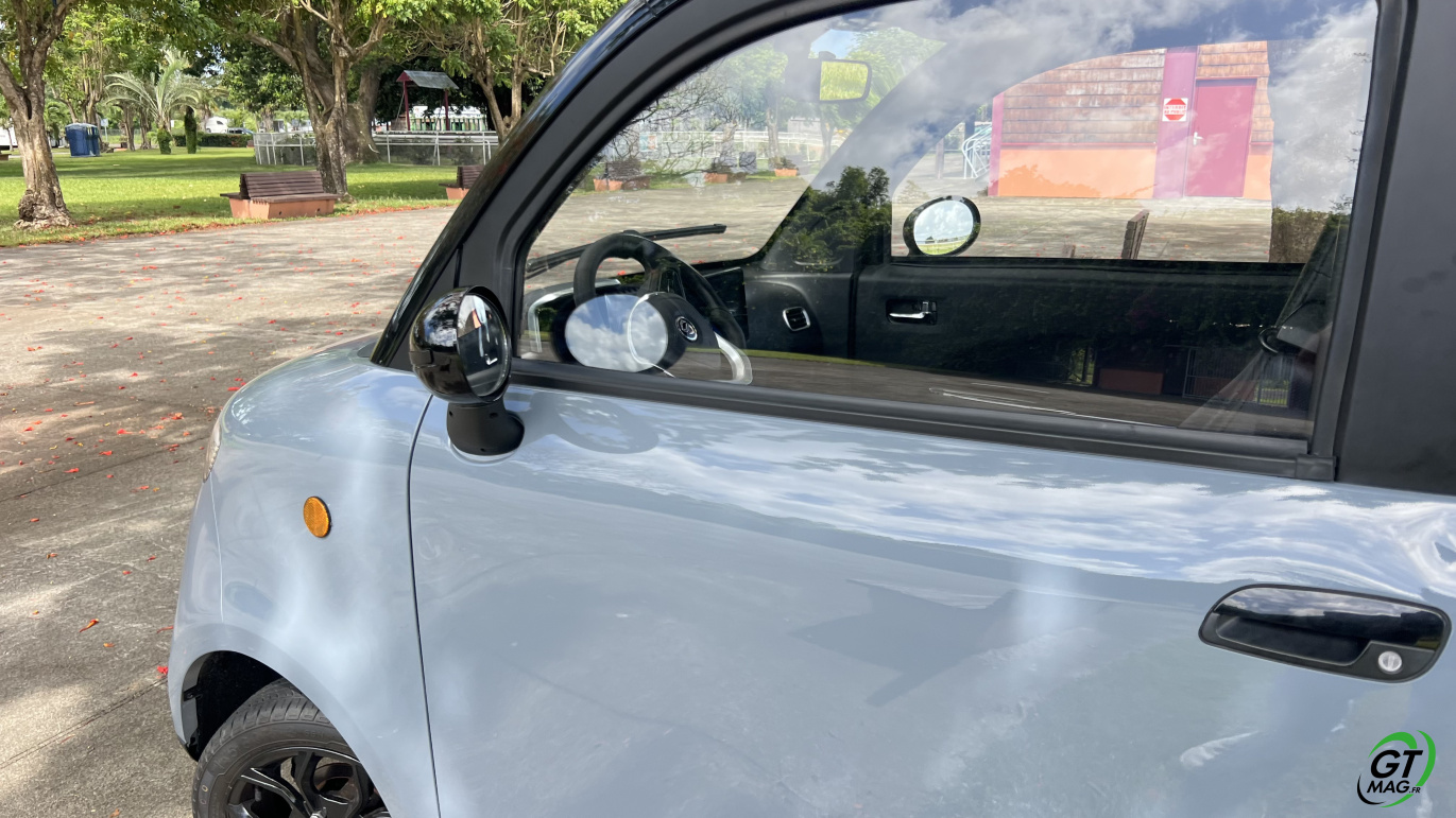 Pour info le conducteur doit être âgé de 14 ans minimum et être titulaire a minima du permis AM. Le permis B n’est pas nécessaire. Mais ceux qui sont nés après le 1er janvier 1988 doivent passer le permis AM (l’ancien BSR) et être détenteur de l'ASSR (1 ou 2) ou l'ASR, comme pour les deux-roues de 50 cm3 (scooters). Il s’obtient dans une auto-école. La formation pratique comprend cinq séquences dispensées sur un volume horaire total de huit heures, au minimum sur deux jours. Depuis le 1er mars 2024, les élèves en apprentissage anticipé de la conduite sont dispensés de la formation pratique… Enfin seules deux personnes peuvent monter à bord, soit un conducteur et un passager sachez qu’un enfant de moins 10 ans doit être installé sur un siège auto homologué. Comptez en Martinique un tarif de 12990 euros TTC…