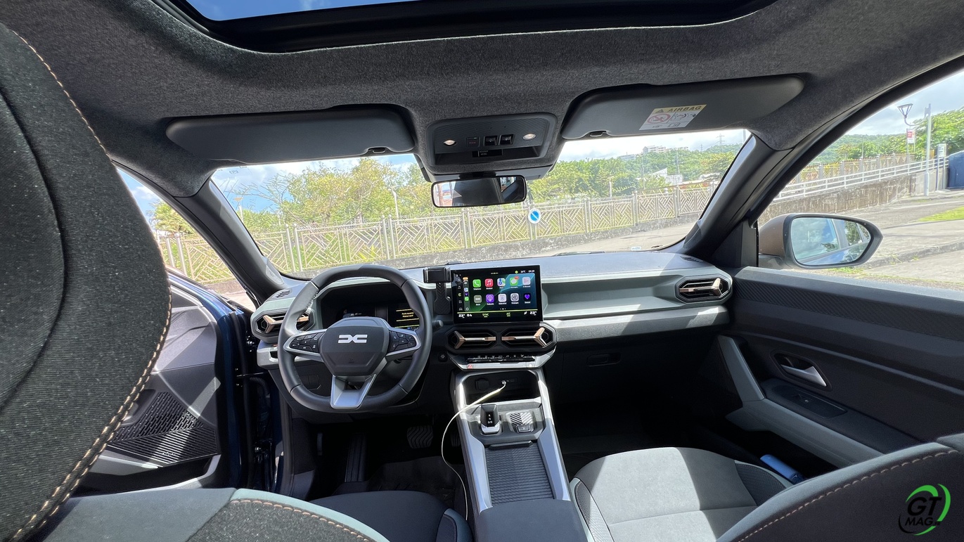 En termes de tenue de route, le DACIA Bigster est dans la bonne moyenne du segment C. Il se montre efficace ses 4 pattes sur notre autoroute et suffisamment maniable pour des sorties en ville. Sur nos routes sinueuses il est un peu plus à la peine compte-tenu de son gabarit, mais ses suspensions et son châssis équilibré offrent une conduite plutôt confortable. Mention très bien pour la direction assistée, plutôt bien calibrée pour un SUV de ce gabarit, ce qui permet de manier avec vraie aisance, même en milieu urbain. Le grand atout de ce véhicule c’est l’espace réservé aux passagers et à sa polyvalence… Côté volume le coffre est un vrai plus pour nos îles si vous êtes sportifs avec planche de surf ou cycliste ou tout simplement plagistes avec un belle et grande famille elle peut assurément vous séduire… A vous de voir et de l’essayer maintenant…