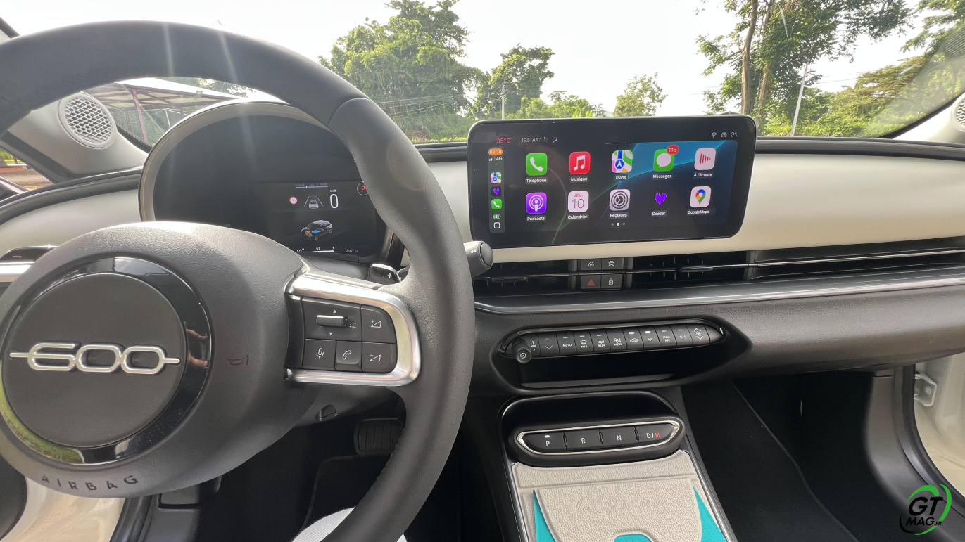 Côté conduite la Fiat 600 hybride offre une expérience agréable et économique… Son design élégant et ses équipements complets la dote de points précieux pour notre magazine… Elle offre un compromis équilibré entre performance et une vraie polyvalence… La direction est précise et la maniabilité facile… Les suspensions sont confortables pour des trajets courts sur route et en ville, elles absorbent assez bien les chocs ce qui rend les trajets quotidiens plus agréable… Le système d’infordissements tactile est ludique et la caméra de recul ajoute au confort de conduite… Sur la route, si la boîte auto se montre assez rapide à la montée des rapports, elle est un peu trop lente à rétrograder. Heureusement, Fiat a prévu des palettes au volant pour les forcer, par exemple avant un dépassement qui, grâce au couple suffisant de 205 Nm à 1 750 tr/min, s’exécute aisément : seulement 8,1 s pour passer de 80 à 120 km/h. A vous de voir et d l’essayer maintenant…