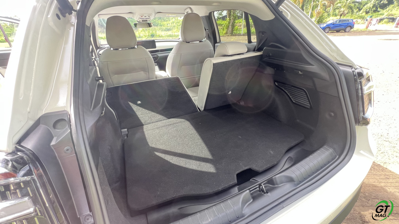 Les places arrière offrent un espace tout juste correct pour les jambes et permettront le minimum de confort requis. Je relève que la place centrale, si elle est étroite, s’avère moelleuse. Le coffre gagne 25 l par rapport à la 600 électrique, grimpant à 385 l. Il fait mieux que la majeure partie de ses cousins de taille équivalente (Jeep Avenger, Opel Mokka, DS 3) et s'avère relativement logeable dans l’absolu. Il complète cela par 15 l de rangements dans l’habitacle, comprenant un grand rangement au bas de la console centrale entre les sièges avant – où l’on trouve le chargeur à induction –, un bac compartimenté dans son alignement, un réceptacle sous l’accoudoir central, ainsi qu’une profonde boîte à gants. La Fiat 600 ‘La Prima’ profite d'un coffre relativement généreux avec 385 l de volume et un double plancher. La plupart des cousins du groupe Stellantis ne peuvent dire mieux.