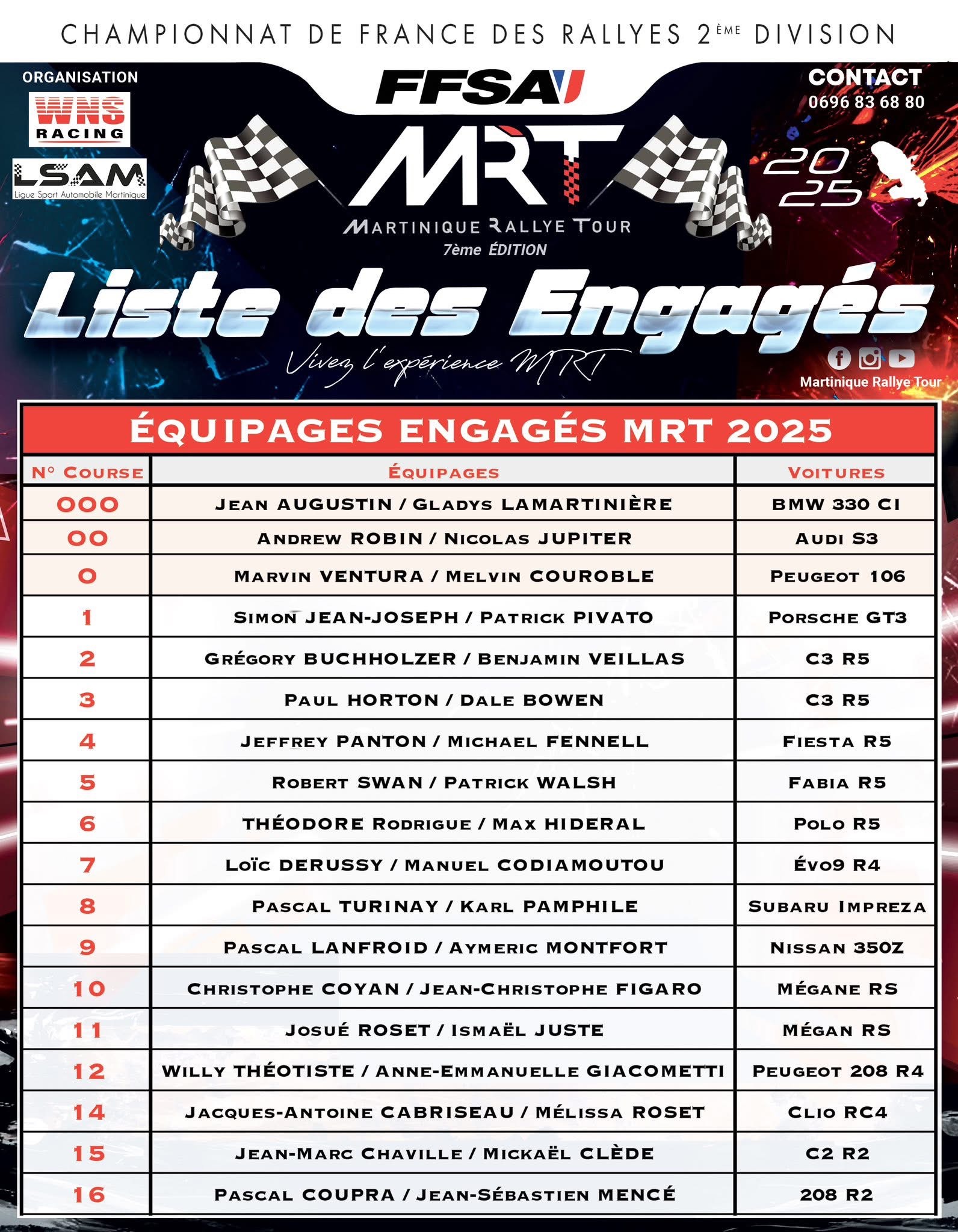 leur Citroën C3 Rally2, terminant à une brillante 2e place parmi 34 équipages en compétition. Une performance d’autant plus remarquable qu’il s’agissait de leur toute première course ensemble et que Grégory prenait le volant de cette voiture pour la première fois en conditions de rallye. Une performance qui confirme leur talent, leur cohésion et l’ambition portée par toute son équipe et ses partenaires. Prochaine étape : le Martinique Rallye Tour du 24 au 27 juillet 2025. Un rallye incontournable dans les Caraïbes, réputé pour ses routes techniques et son ambiance unique. Grégory s’élancera avec une motivation renouvelée, prêt à faire vibrer le public martiniquais et à viser un nouveau podium !