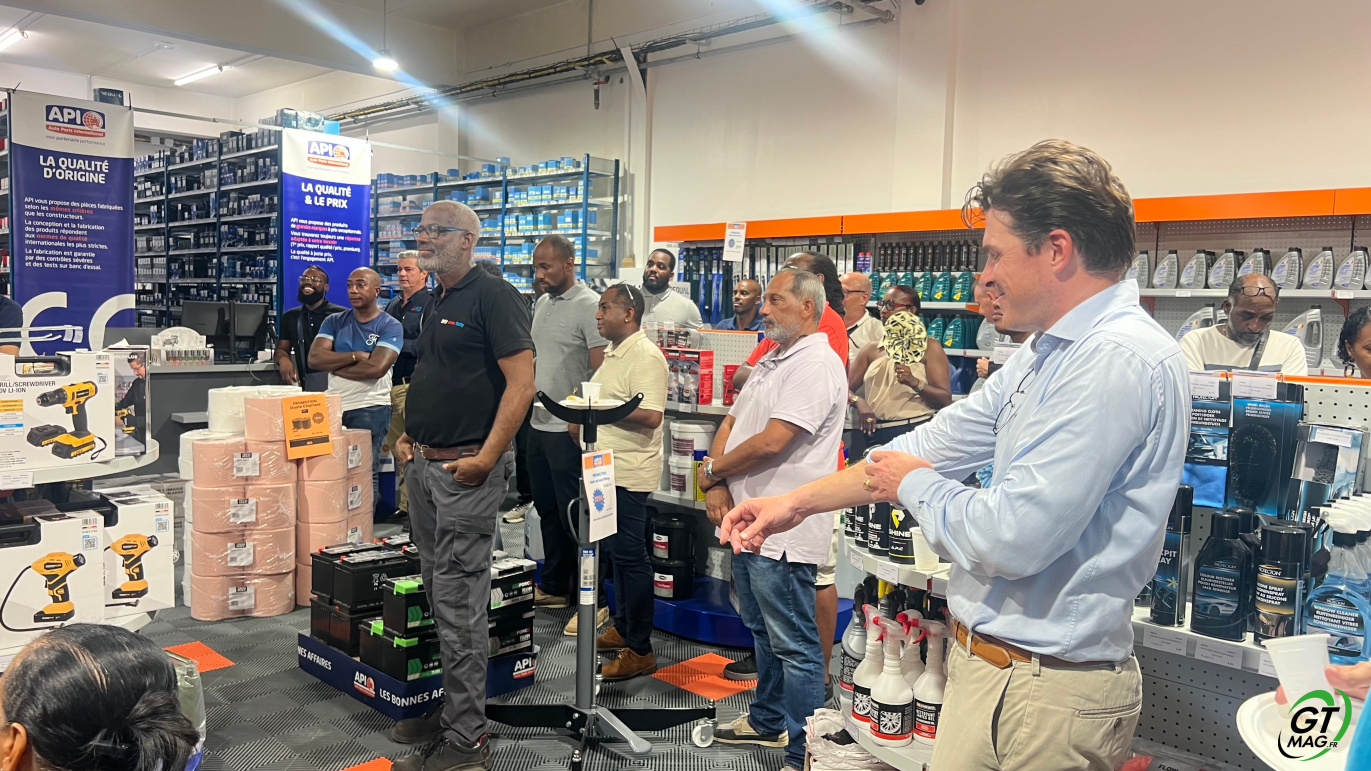 Présent avec toute son équipe, Hervé ROUAS Directeur API accompagné d’Eric PELISSIER Responsable National Business Développement chez DOYEN AUTO France affichait hier soir une sincère joie pour l’ouverture du second site API de pièces automobiles pour particuliers et professionnels… La performance est bien là avec deux centres ouverts en 3 mois… Après être revenu sur son parcours de cadre Hervé Rouas nous rappelait que le groupe Doyen et le Groupe DE REYNAL existait respectivement depuis 1922 et 1913… Pour ce qui est de DOYEN FRANCE Hervé ROUAS nous rappelait la logistique de l’équipementier imposante avec des commandes préparées à la voix par exemple ce suppose une logistique informatique de pointe, soulignant qu’en Belgique pour ne citer qu’elle, ‘DOYEN’ dispose de 65000 m2 de surface de stockage répartis sur 13 plateformes avec près de 110.000 références stockées… API Martinique à de fait accès de façon hebdomadaire à 200.000 références avec des apprivoisements en 24 heures et des livraisons en Martinique depuis le port du Havres chaque semaine… Les pièces proposées par API Martinique sont d’une grande fiabilité dites Premium à des coups plutôt intéressant pour le client final plutôt intéressants représentées par exemple par la marque de DOYEN France ; DOYEN Auto… Hervé à ensuite présenté son équipe qui se veut proche des clients et dans un esprit familial…
