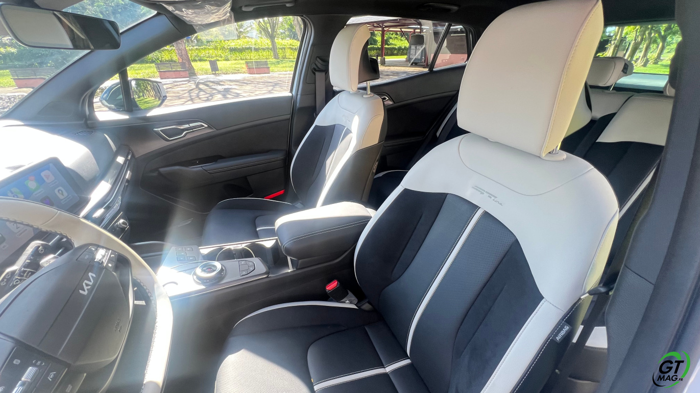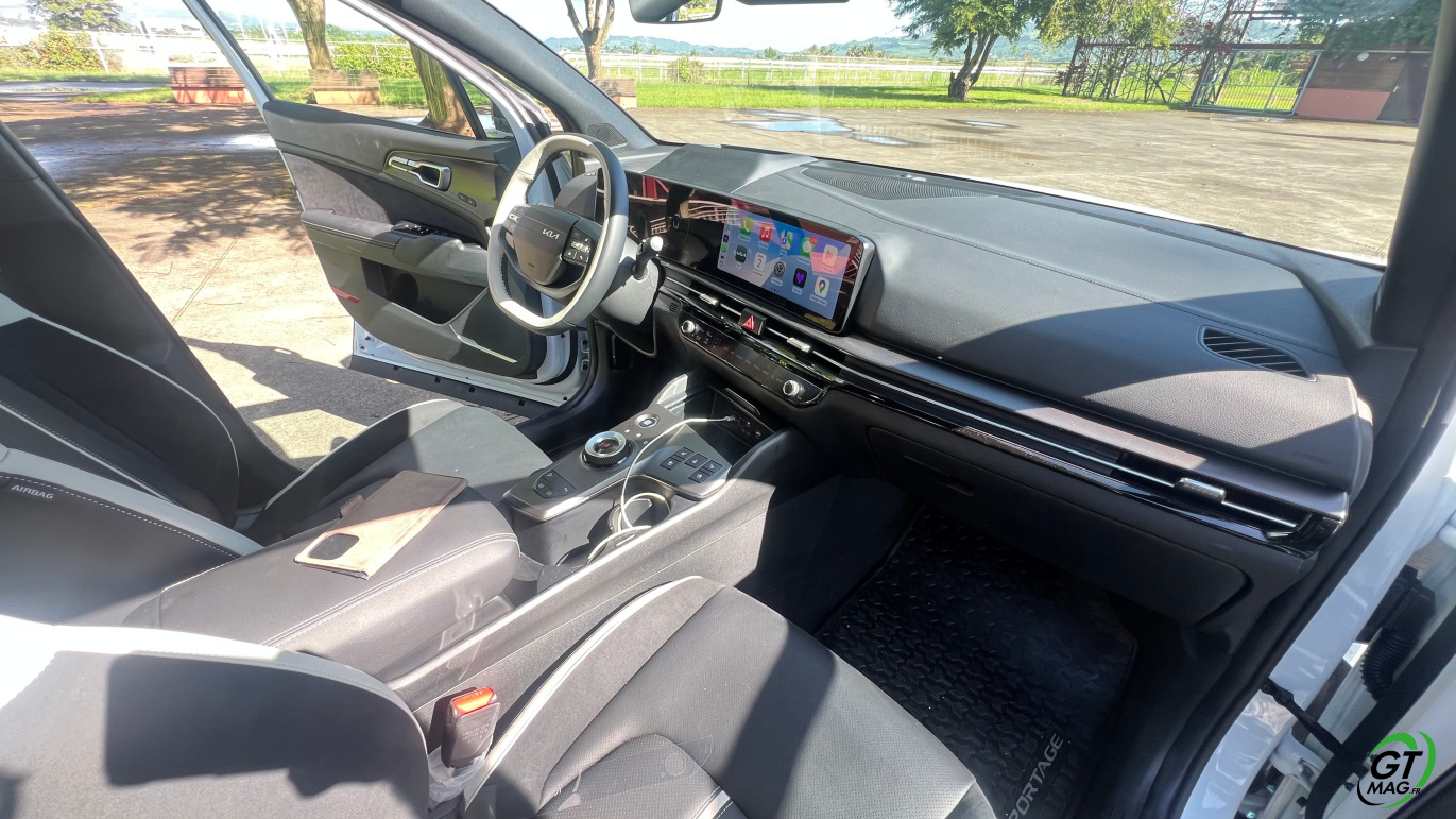 La finition GT-Line de notre essai comprend les jantes en alliage 18’’, les phares avant LED matriciels, la sellerie mixte en matière synthétique et suédine et d’éléments de style tels que les rétroviseurs noir brillant, les vitres et lunettes arrière surteintées ou encore l’éclairage d’ambiance personnalisable. Le Sportage se dote également dans cette finition du combiné d’instrumentation 100% digital 12,3’’, du système anticollision avec détection des angles morts (BCA), de la clé digitale 2.0, du hayon électrique à ouverture mains-libres, des sièges avant électriques, du volant et des 4 sièges chauffants et de la climatisation tri-zone. Ce Sportage 239ch hybride a fort à faire à face à lui son cousin le Hyundai Tucson, mais également le Renault Austral moins puissant (200 ch). Les autres rivaux disposent de moteurs hybrides, mais leur puissance est inférieure à 200 ch. On peut citer dans ce cas-là les Honda ZR-V,Nissan Qashqai, Toyota Rav 4, ou MG EHS hybrid +