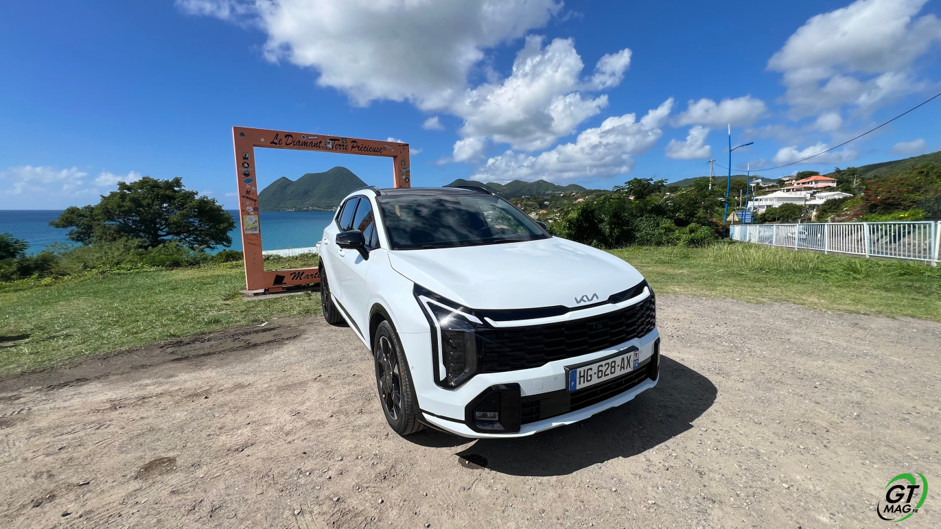 Star de la marque coréenne, le Kia Sportage bénéficie d'un restylage de mi-carrière un face Lift qui va lui permettre très surement de continuer à conquérir la clientèle Antillaise et donc les martiniquais et les martiniquaise, oui beaucoup de femmes assurément… Tout y est pour attirer les utilisateurs et utilisatrices de marques sûres et fiables à l’instar de certaines marques chinoises plutôt incertaines en matière de fiabilité tant nous n’avons pas d’historiques à court, moyen et long terme… Marques Chinoises qui déferlent et vont encore déferlées aux Antilles et déjà en Martinique, elles vont surement servir à faire encore plus de marge pour certains distributeurs régionaux… Le Kia Sportage, lui, est connu et bien connu sa fiabilité n’est plus à démontrer… Il propose en cette fin d’année un intérieur revu et une motorisation uniquement hybride dont la puissance est portée à 239 ch. La marque coréenne de fait assure l’avenir de son modèle le plus vendu avec un rafraîchissement plutôt réussi et surtout bienvenu… Voyons…