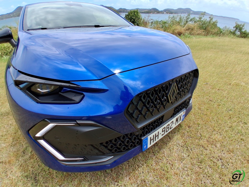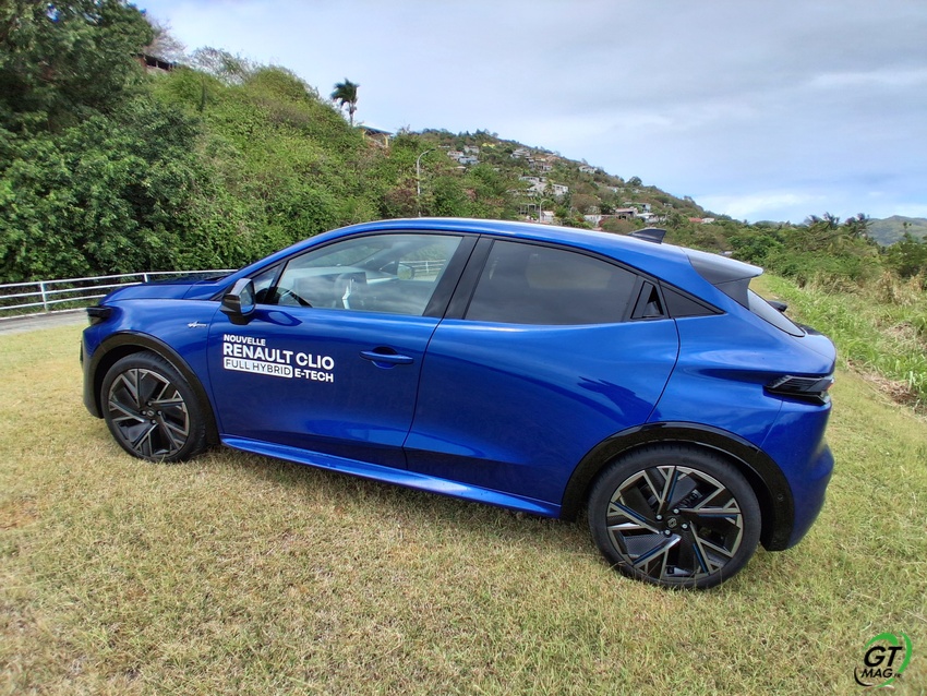 Elle vient d’arriver en Martinique et la sixième génération de la Clio se réinvente quasi totalement avec un tout nouveau design ainsi qu’une sérieuse modernisation de son intérieur et de ses équipements avec matériaux soignés jusqu’aux contre-portes… Dessinée sous l’impulsion de Gilles Vidal, cette Clio 6 change donc ses codes esthétiques et adopte des motorisations hybrides toujours plus efficientes. Nous l’avons essayée dans sa déclinaison haut de gamme, finition Esprit Alpine et moteur hybride 160 ch. Le design est et restera, de toute manière, une affaire de goût. Mais c’est incontestablement la face avant qui marque la rupture la plus nette : calandre arrondie et détachée des projecteurs, grille constellée de petits losanges, large prise d’air traversante et DRL en forme de losange scindé inspirés du concept Emblème.