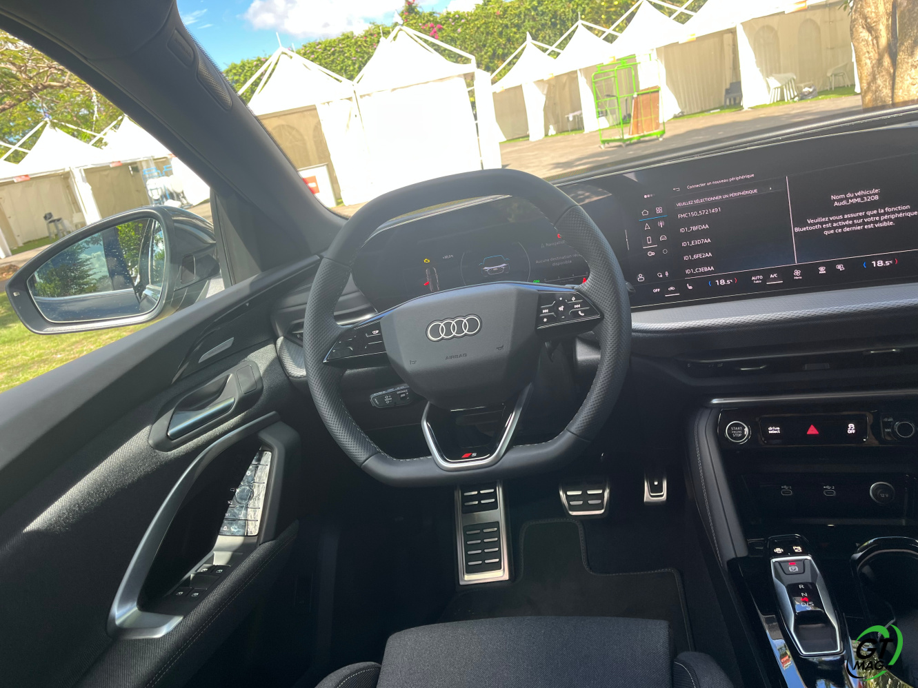 Nous sortons à peine de la soirée de lancement des nouveaux Q3 et Q5 chez AUDI Martinique que déjà notre essai du Q3 Sportback est disponible sur Gtmag.fr et que ce matin nous allons tout vous dire sur l’iconique AUDI Q5 Sportback TDi de 3ème génération fraîchement arrivé sur notre île… AUDI propose toujours un moteur diesel dans son offre. Une motorisation qui devient rare, et dont nous avions presque oublié les avantages…  Pendant thermique du Q6 e-tron, l’Audi Q5 se distingue par sa vraie calandre « Singleframe » au motif en nid d’abeilles présentant de larges ouvertures afin de faciliter le refroidissement de la mécanique. Pour le reste, on est sur un copié/collé du SUV électrique, dans sa version normale ou dans sa déclinaison Sportback qui sont tous deux sportifs et élégants. Départ de chez AUDI Martinique à côté d’AUTOSGM près de la Galléria…