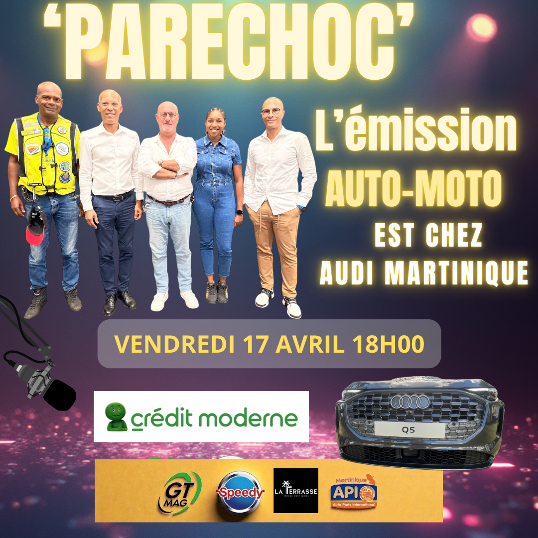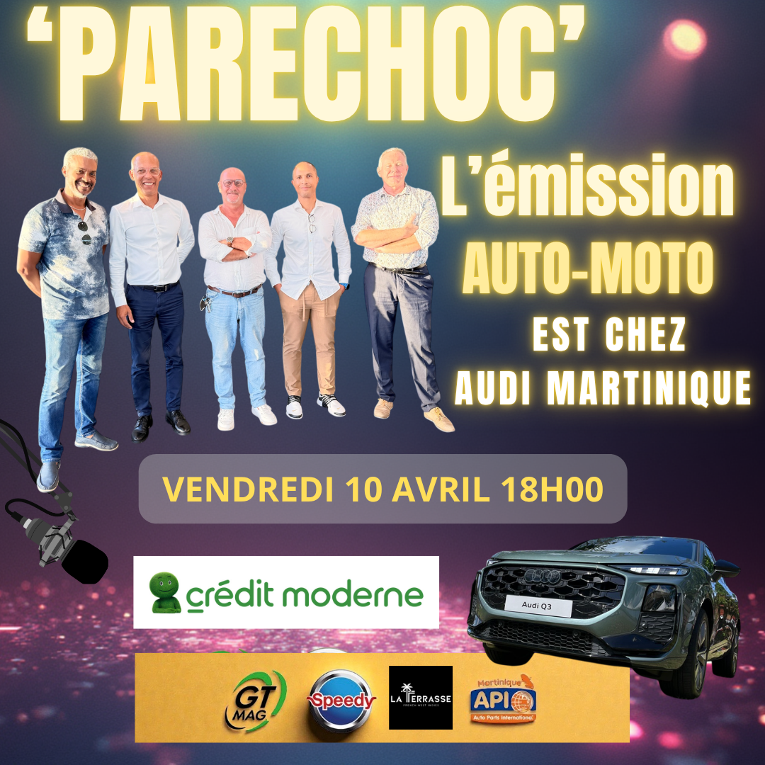 Vendredi 10 avril dès 18h00 Parechoc L'émission vous propose une spéciale Audi Martinique à l'occasion de la sortie des nouveaux #AudiQ3 et #AudiQ3Sportback déjà essayés sur www.gtmag.fr ! Nous émettrons depuis la concession #audi pour évoquer toutes les nouveautés de la marque aux anneaux en #martinique et ses avancées technologiques déjà remarquées sur ses nouveaux modèles... #nicolasaron de retour dans l'émission nous brossera le portrait historique de la marque avec son sens de la répartie h...