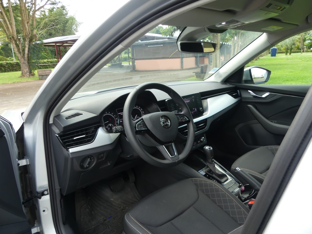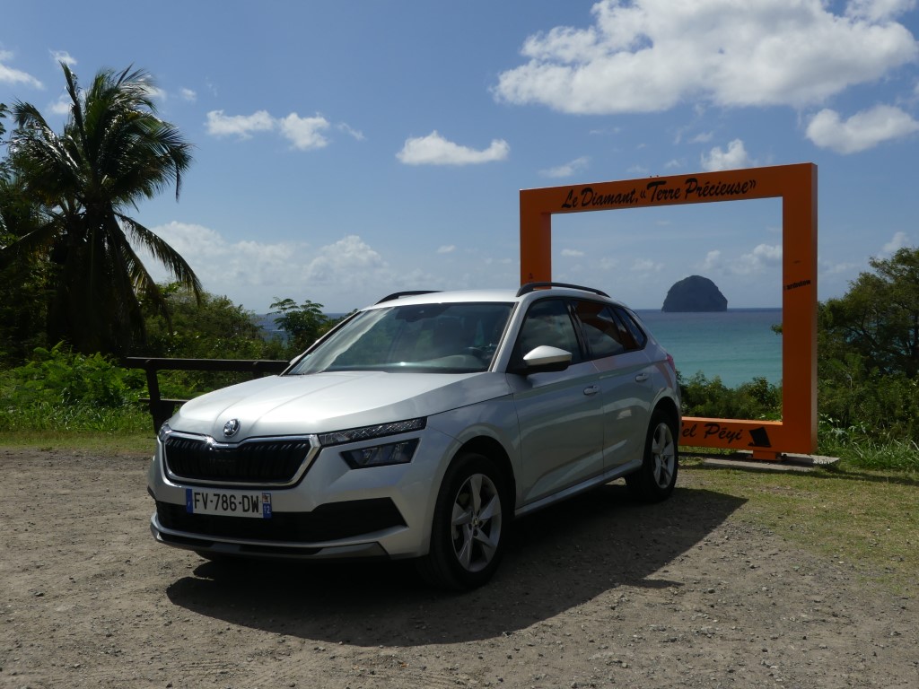 D’apparence sobre, le poste de conduite est clairement agencé. Les matériaux de bonne qualité côtoient un large écran tactile ainsi qu’une instrumentation digitale élaborée d’un maniement intuitif. Le faible  niveau sonore à vitesse constante procurent un appréciable agrément de marche, notamment sur notre autoroute. En utilisation urbaine, le Kamiq s’avère fûté et capable de se faufiler dans les ruelles de Fort de France en restant sobre… Départ du Lamentin en Martinique pour nos routes du bord de mer…