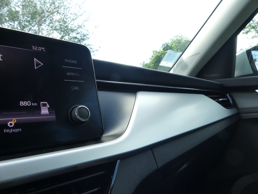 Basé sur la plateforme MQB A0, le Kamiq atteint une longueur de 4,24 m. Ce qui en fait l’un des plus grand de sa catégorie. La planche de bord est reprise de la Scala. Elle possède des plastiques moussés sur la partie supérieure, contrairement à celle du T-Roc, ce qui apporte une belle présentation. Les contre-portes sont bien traitées également, et notre modèle d’essai enfonce le clou avec un grand écran central tactile de 9,7 pouces et son combiné d’instruments entièrement numérique en série.