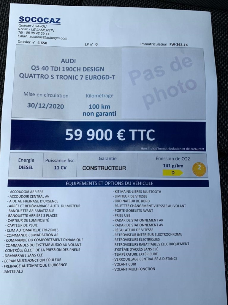 A SAISIR AUDI Q5 40 TDI 190ch DESIGN QUATTRO S-TRONIC