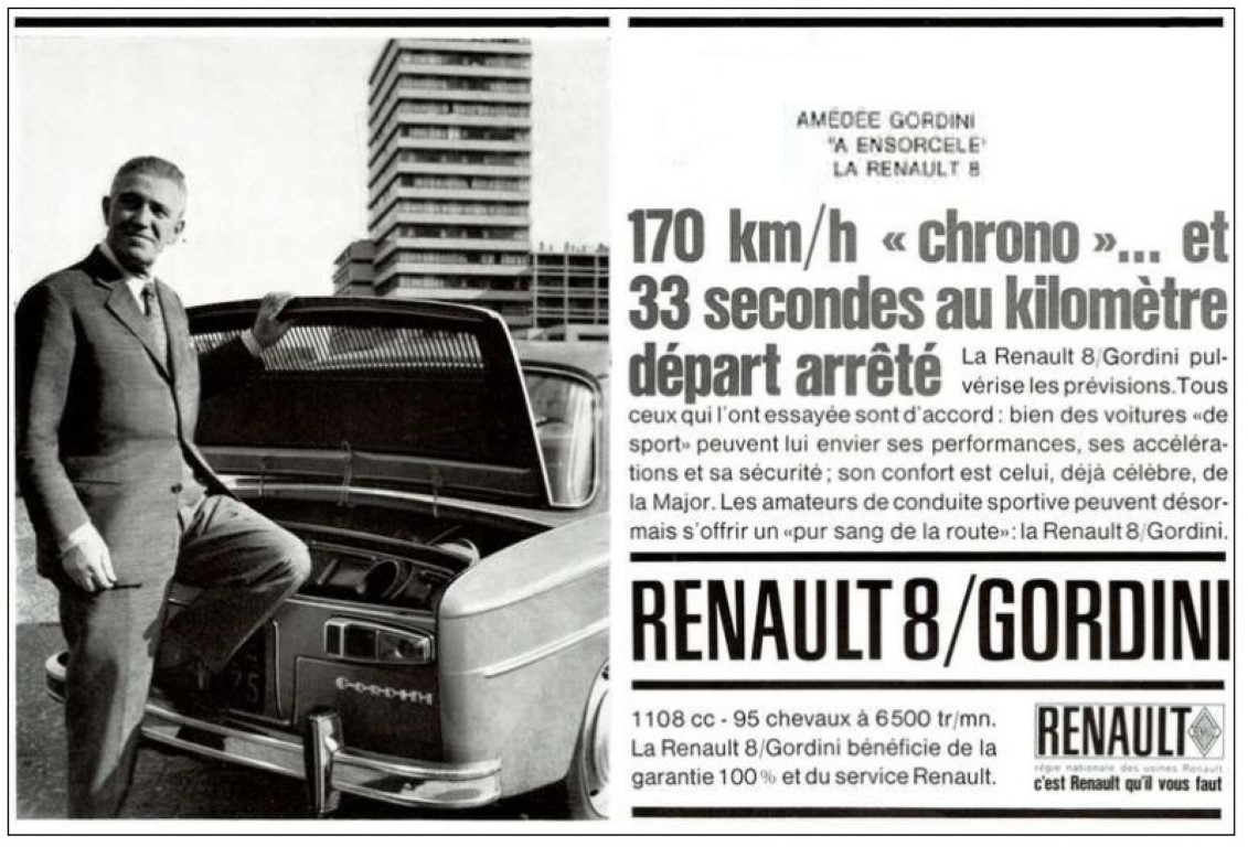 En 1956, Amédé Gordini sombre et timide songe déjà à sa reconversion. Il rencontre alors Pierre Dreyfus, le patron de la Régie de l'époque, à laquelle il va apposer son nom. La première Dauphine Gordini apparaît en septembre 1957. Elle sera suivie des légendaires R8 Gordini de 1964 à 1970 et des R12 Gordini de 1970 à 1974.