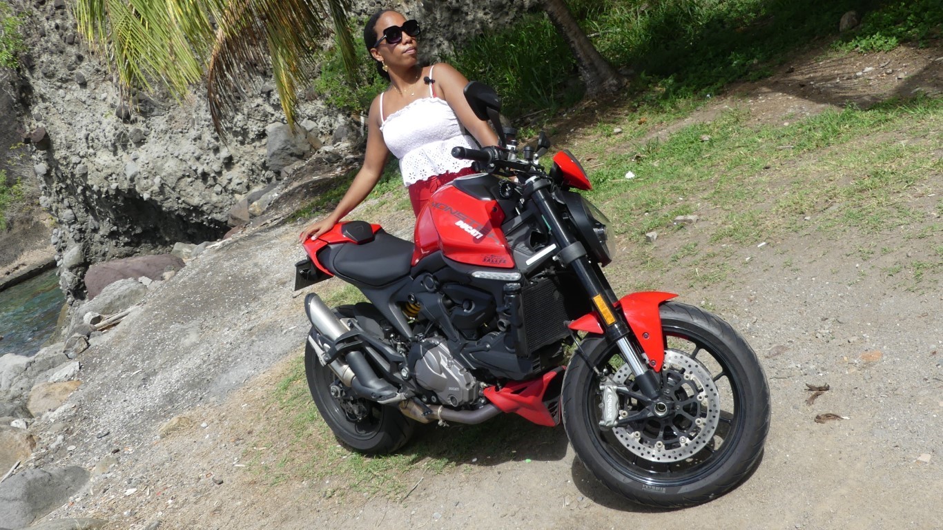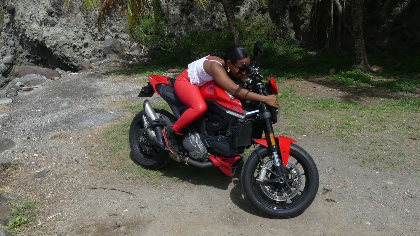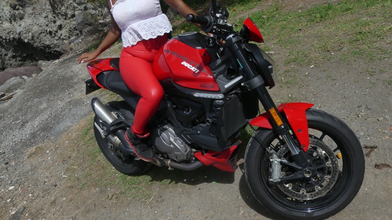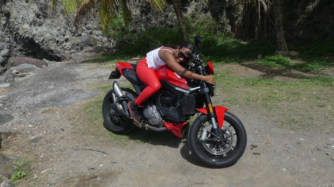 En gros un jouet des villes qui ne rechignera pas à grimper les hauts mornes de Martinique de façon sportive voir agressive selon vos souhaits en jouant avec ses 3 modes de conduite : Urban, Touring et Sport. Ils jouent sur la cartographie, mais aussi sur le traction control et l’ABS. Sachant qu’il est possible de changer de mode en roulant ! Ducati n’a pas lésiné puisqu’il est possible de rentrer dans les cartographies pour les configurer plus finement. Les plus téméraires déconnecteront l’anti-wheeling ou réaliseront un démarrage canon en usant du Launch Control. Allé et si on demandait à Claire Boulogne ce qu'elle en pense elle de sa moto ??? Entendez-la dans notre essai vidéo ci-dessus...