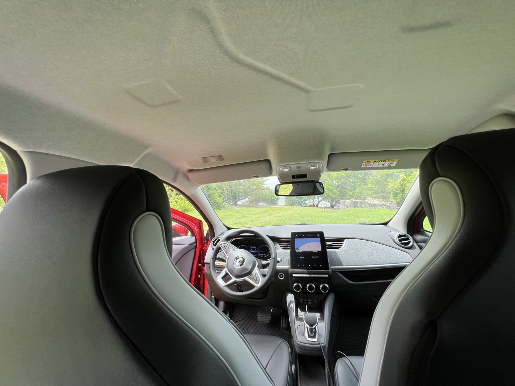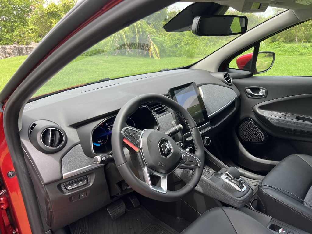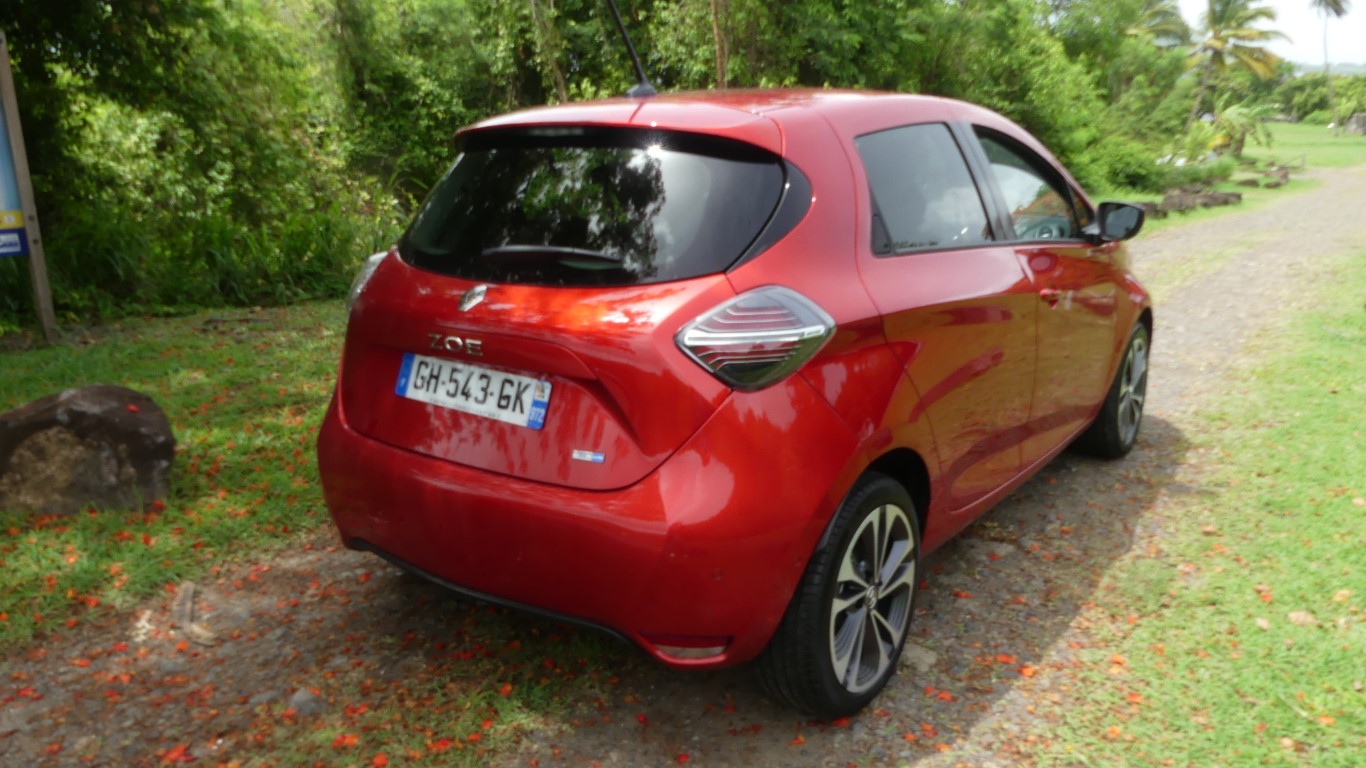 La version Z.E 50 a apporté un restylage en 2019, mais on reconnaît toujours la Renault Zoé. Longue de 4,09 m, soit à peine plus qu’une Clio, il s’agit d’une citadine polyvalente (segment B). Elle est assez haute, avec 1,56 m, contre 1,44 m pour une Clio par exemple. Si les évolutions extérieures sont relativement légères, l’intérieur de la Zoé n’a plus rien à voir avec celui dont elle disposait au lancement. Sa planche de bord reprend le dessin de celle de la Clio V avec, comme pour cette dernière, un bond en avant en qualité de présentation. Sur cette finition, l'intérieur se pare notamment de tissu recyclé, que l’on aurait toutefois apprécié un petit peu plus doux, pour les accoudoirs des portières notamment. L’habitabilité aux places arrière est moyenne, mais après tout le gain se retrouve dans la facilité de stationnement comme toute bonne citadine... tant au niveau des genoux que de la tête. Le tunnel central est bas, 3 passagers voyagerons pas trop mal particulièrement les enfants le week-end sur nos courtes distances en Martinique...