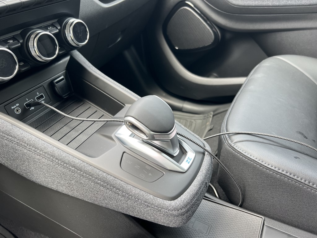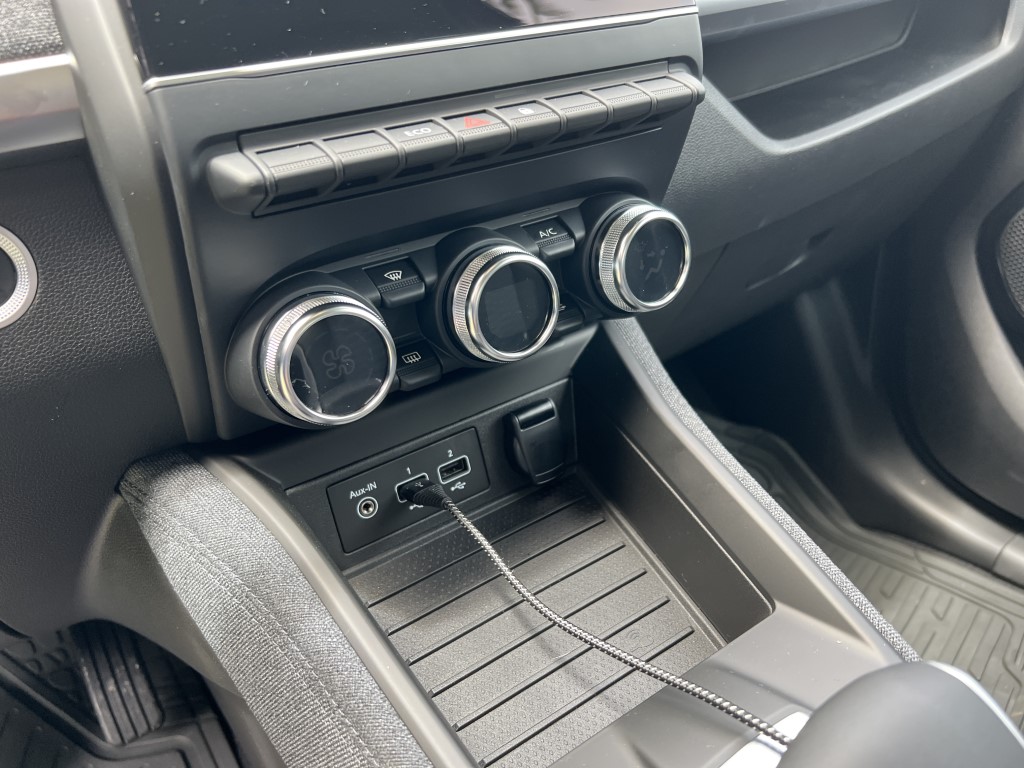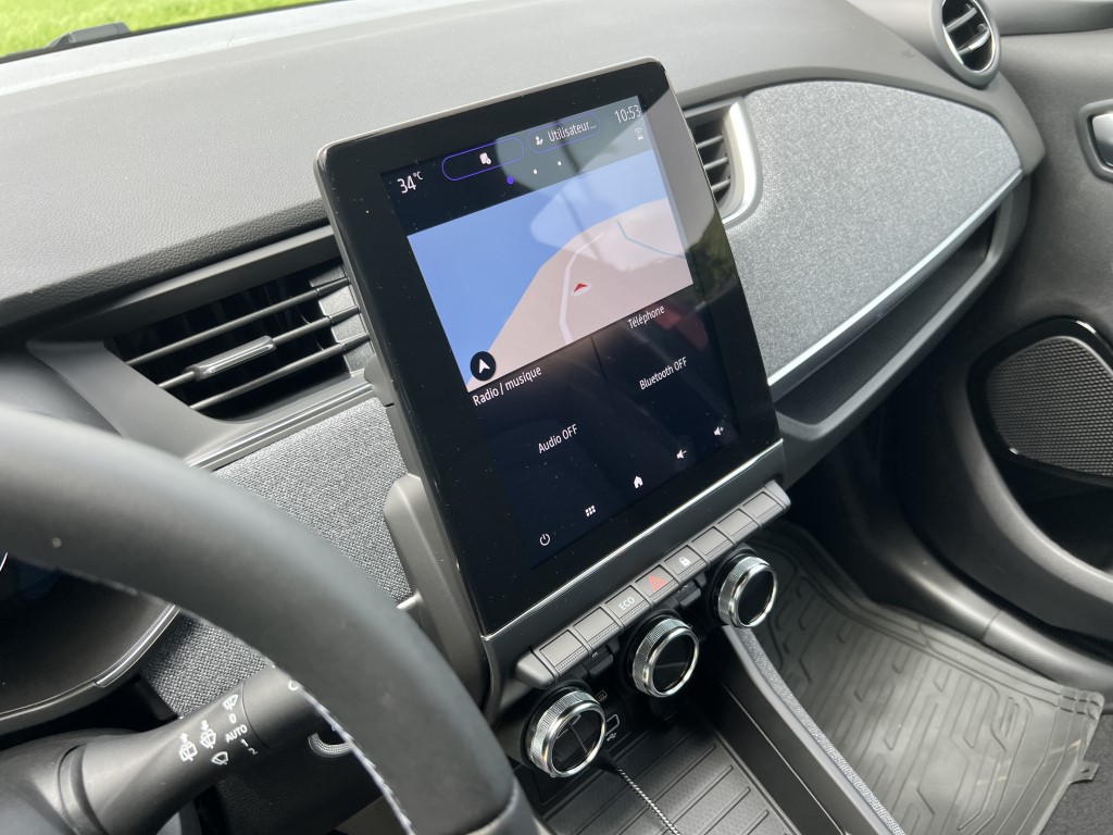 Le coffre dispose d’un volume de 338 l (VDA), contre 391 l pour une Clio essence et seulement 265 l pour une Peugeot e-208. Les câbles de recharge prennent place sous le plancher de coffre (non modulable). Si le câble Type 2/Type 2 est livré de série, ce n’est malheureusement pas le cas de celui dédié à la charge domestique qui reste en option... Parmi les modernisations apportées par la version Z.E. 50, la Zoé a notamment hérité du système Easy Link. En finition techno, l’écran central est au format horizontal, pour une diagonale de 7”. En option, il est possible d’opter pour une dalle verticale de 9,3”, comme en est équipé notre modèle d’essai. Cette interface est assez bien pensée avec un système de tuiles, mais manque cruellement de rapidité et de fluidité. Elle est compatible avec Android Auto et Apple CarPlay en versions filaires. En version techno, notre essai en martinique, la Zoé intègre deux ports USB de type A à l’avant et deux de type A à l’arrière... Un chargeur à induction est disponible en option.