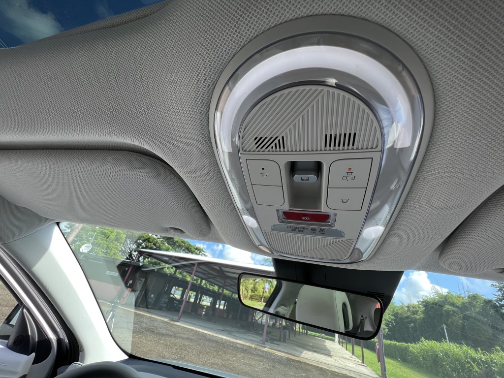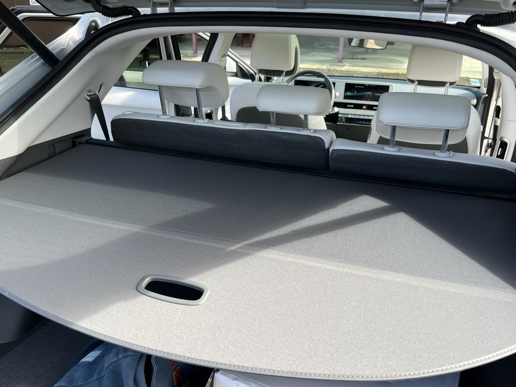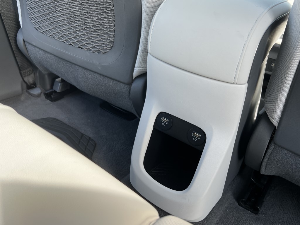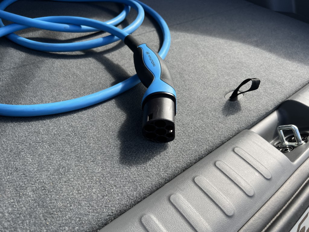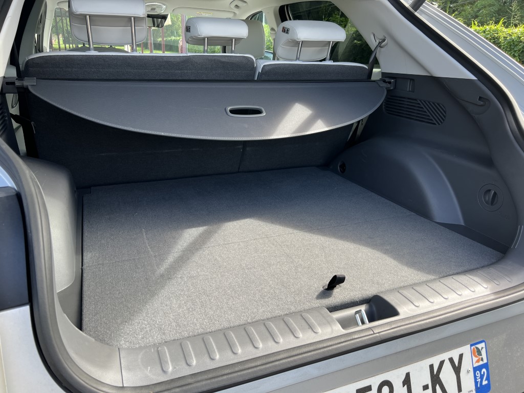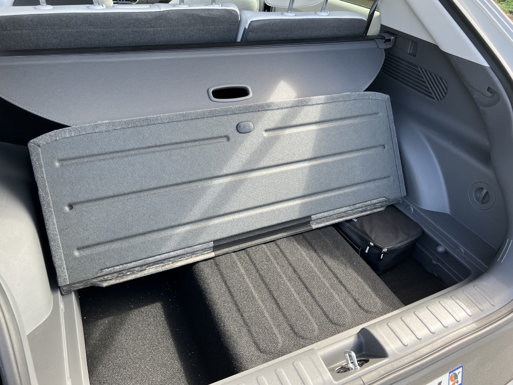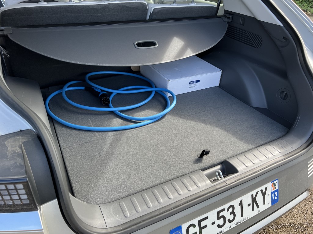 Au niveau de l’habitacle cependant, Hyundai a choisi un intérieur tourné vers la modernité et plutôt sobre. Ainsi, seuls 2 grands écrans trônent avec quelques boutons physiques de raccourci. La prise en main de ces écrans et des fonctions et informations qu’ils renvoient se fait aisément. Cela donne un aspect technologique et apporte une belle ambiance dans l’habitacle. Même si elle ne parait pas grande extérieurement, l’habitacle ne manque pas d’espace et se veut très ouvert et très accueillant. En effet, Hyundai a fait le choix de maximiser l’espace avec un plancher plat et ouvert entre les 2 sièges avant et une banquette coulissante et inclinable derrière. Le tout associer à des sièges très confortables. Tout le monde y trouve donc son bonheur, quel que soit sa place et sa taille. De plus, le coffre offre un beau volume de chargement avec 527l ou 1587l. Seul bémol du design arrière : le couvre bagage un peu bas et le manque d’essuie-glace arrière.