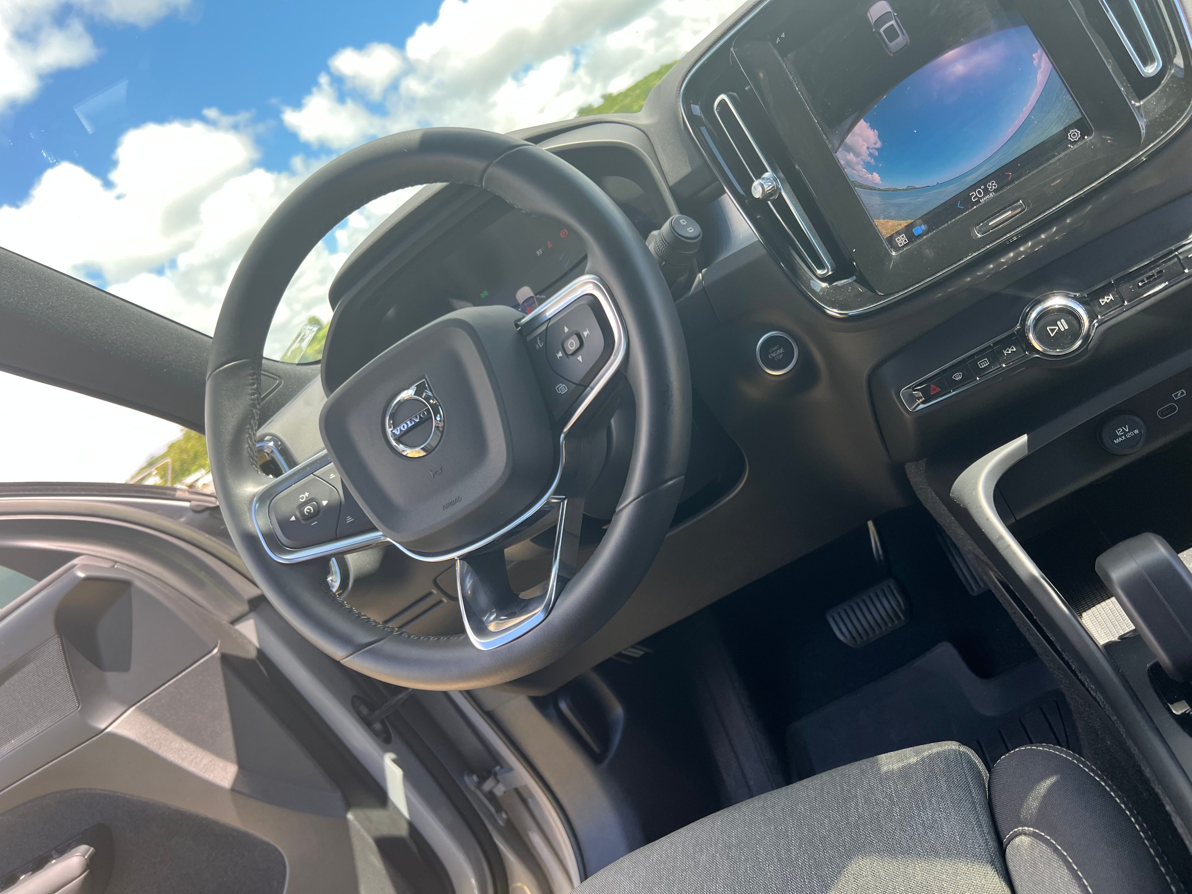 Au démarrage, on est agréablement surpris par le niveau sonore très bas… Le Volvo X se veut dès la prise en main confortable la suspension nous le verrons dans notre drive test joue un rôle non négligeable dans celui-ci... Le moteur 4 cylindres CVT micro-hybride est plutôt discret et devient très vigoureux à la moindre sollicitation. La direction vraiment douce et précise, tout comme la boîte DCT7 de série très bien étagée. Son quatre-cylindres 2 L est doté d’un turbocompresseur, d’un compresseur volumétrique, et d’un alterno-démarreur pouvant fournir un boost de 14 ch lors des reprises.