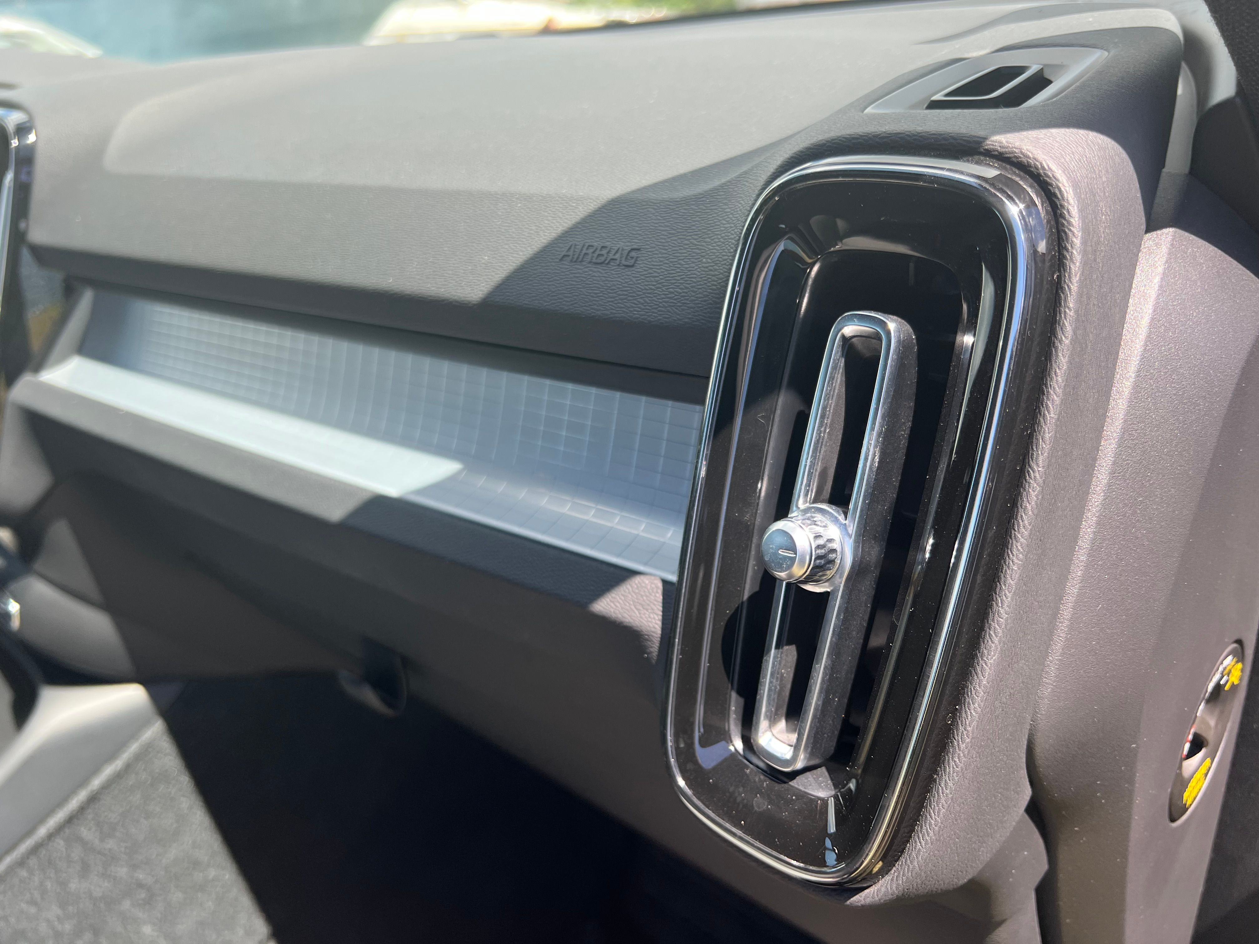 Esthétiquement, le Volvo XC40 en impose toujours avec sa calandre incurvée. Ce SUV compact et familial soigne son design et ne laisse pas indifférent face à ses concurrents. Avec sa signature lumineuse reconnaissable, le marteau de Thor éclaire votre chemin, il n’y a pas de doute, il s’agit bien d’une Volvo. Le travail apporté au design et aux effets de lumière sur la carrosserie s’observe sous tous les angles. La partie arrière, si différente impose ses longs feux verticaux. À noter les très belles jantes de 18 pouces à flancs hauts utiles pour le confort. Avec une longueur de 4, 42 mètres, ce beau SUV compact est l’un des plus imposants de sa catégorie. L’élégance scandinave se poursuit à l’intérieur.