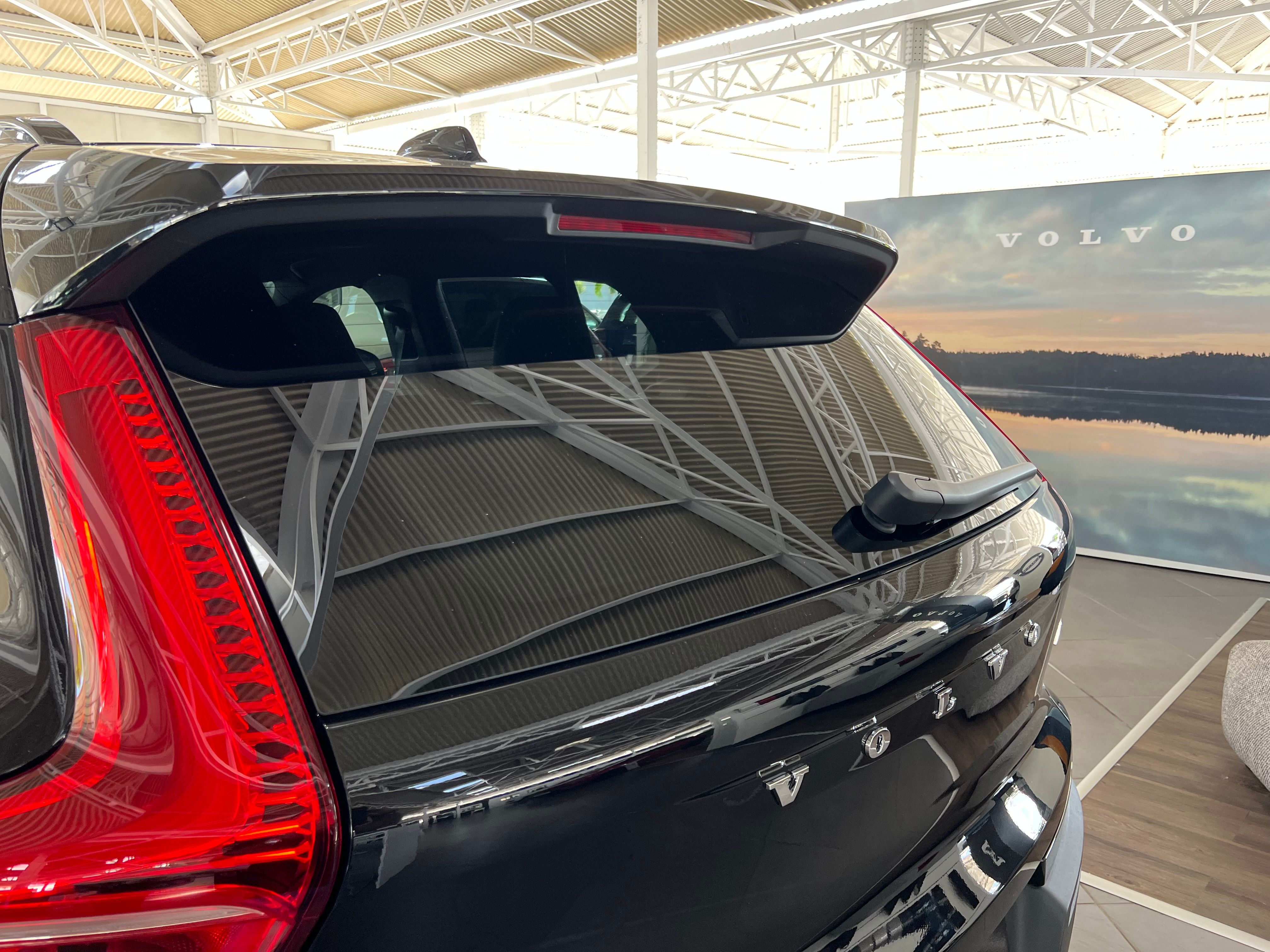 Ouverture des portes sans clé Keyless Entry incluant éclairage du sol dans les poignées de porte avant ! Hayon électrique avec fonction Confort (sans les mains) ! Sellerie tissu City / Anthracite ! Jantes alliage 18’’ 5 branches Argent Brillant ! Pneus toutes saisons (en série avec les jantes 18’’ et 19’’, indisponibles avec les jantes 20’’ et 21’’) ! Radars de stationnement avant ! Volant sport gainé de cuir avec insert Aluminium ! Système de recharge sans fil pour smartphone situé dans le compartiment de rangement avant (technologie d’induction éléctromagnétique) ! Éclairage d’intérieur : Spots de lecture à l’avant avec éclairage des passagers avant, éclairages dans le coffre (x2). ! Miroirs de courtoisie éclairés avec éclairage d’ambiance au niveau des pieds. Boîte à gants éclairée ! Rails de toit finition Chrome ! Incrustations Urban Grid ! Assise des sièges avant extenseible manuellement ! Rétroviseur intérieur sans contour électrochrome ! Système audio Volvo High Performance avec technologie air woofer au niveau de la console centrale…
