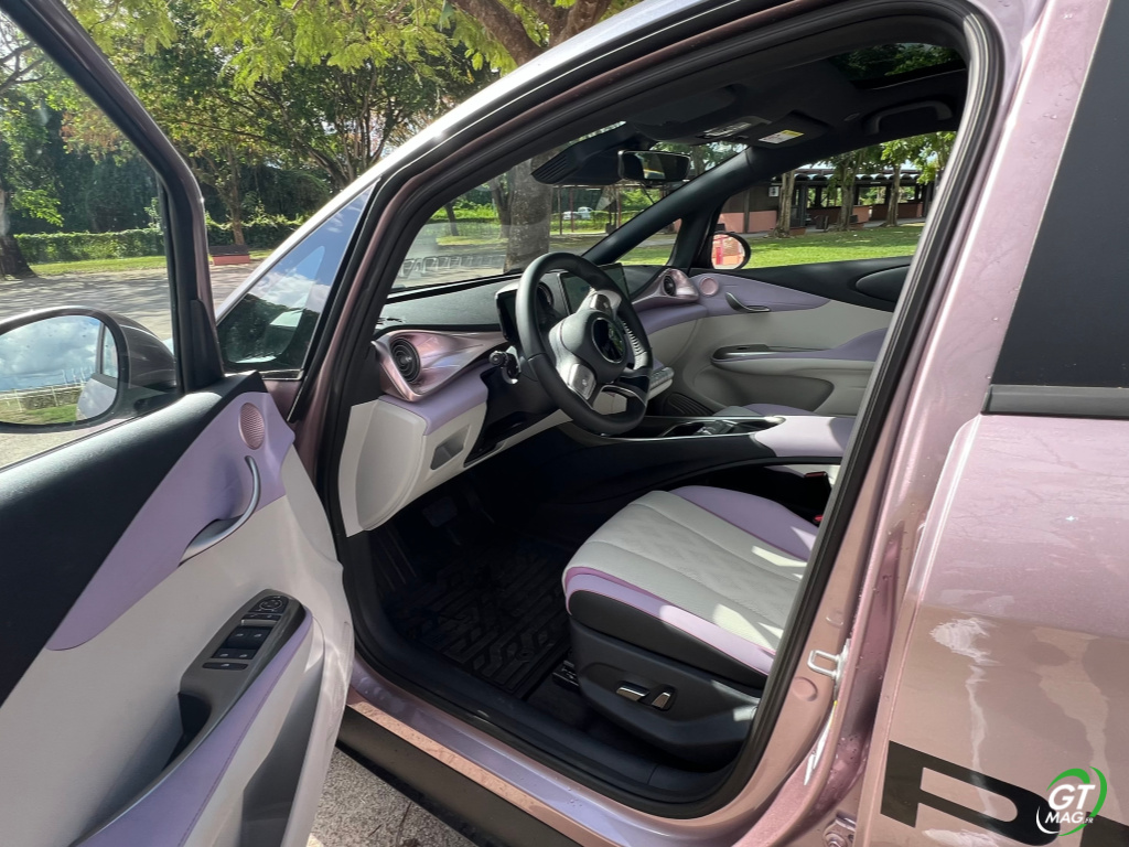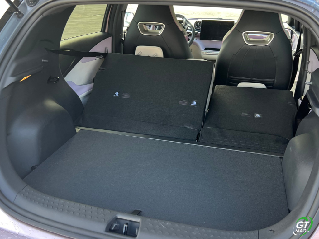 L’intérieur est surprenant compte tenu de la qualité des matériaux et très bien doté… On a peine à croire que l’on est dans une chinoise… Le toit panoramique de notre version Design est des plus agréable… Les sièges sport intégrés offrent un vrai confort avec un soutien latéral perfectible. Les sièges du Dolphin sont fabriqués en cuir végétal durable, offrant une solution écologique que la marque a su développer sans laisser de côté leur style. Grâce aux réglages multiples, vous pouvez personnaliser votre siège en fonction de vos besoins. L’écran central est rotatif, « oui Madame, il fallait y penser », il permet avec 12.3 pouces de belles connectivités multimédias… Un écran "motorisé" donc qui peut passer du format portrait au format paysage en un clic… Au total, 20 espaces de rangements proposés par le Dolphin BYD c’est juste top… Le coffre de 345 litres passe à 1 310 litres lorsque les deux sièges arrière sont rabattus.