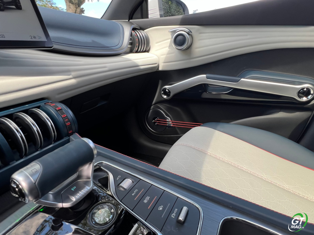 A l’intérieur tout devient fluide et évident pour cet espace dédié au confort et qui semble tout droit venue de l’aéronautique… Les pilotes d’Air Caraïbe ou de Corsair ne seront pas dépaysés donc… Ce 5 portes propose un brin de fraicheur sur le segment et la tout explose surtout les codifications européennes sur le sujet… « Build Your Dreams » c’est surement le levier de vitesse tout droit sorti d'un Airbus ou d'un Boeing, combiné aux grilles d'aération circulaires au bas du tableau de bord. Si l'on ajoute les cordes de guitare sur les vide-poches des portes, on peut parler d'un intérieur original et hors normes. C’est vraiment plaisant…