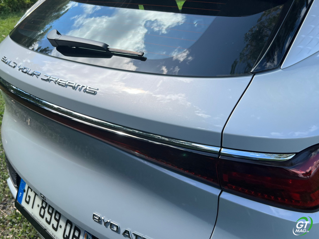 Pour mieux comprendre son design plutôt sympa et dans les codifications de nos électriques françaises ou germaniques il faut savoir que Wolfgang Egger est le designer de la BYD depuis 2017, il a œuvré chez Seat chez Alfa Romeo qui lui doit la magnifique 8C Competizione, les 156, 166 et 147. Il a aussi été magicien du crayon chez Audi et Lamborghini. Toujours chez BYD, le designer est également à l’origine de la berline Han de la gamme dont nous parlions il y a un instant. Tout est dit du coup mais non nous voici devant une calandre « Dragon Face » comme la nomme BYD, un design “qui s'inspire de milliers d'années de culture chinoise”. L’idée des ingénieurs de la marque soutenus par Wolfgang Egger est de transfigurer de façon subliminale le dragon, tels que les yeux et la moustache matérialisés ici par les phares qui font écho aux feux arrière continus, ils bénéficient d’un faisceau lumineux plus large sensés améliorer la visibilité et la conduite de nuit. Cet ensemble donne un air symbolique et original  à l’Atto 3.
