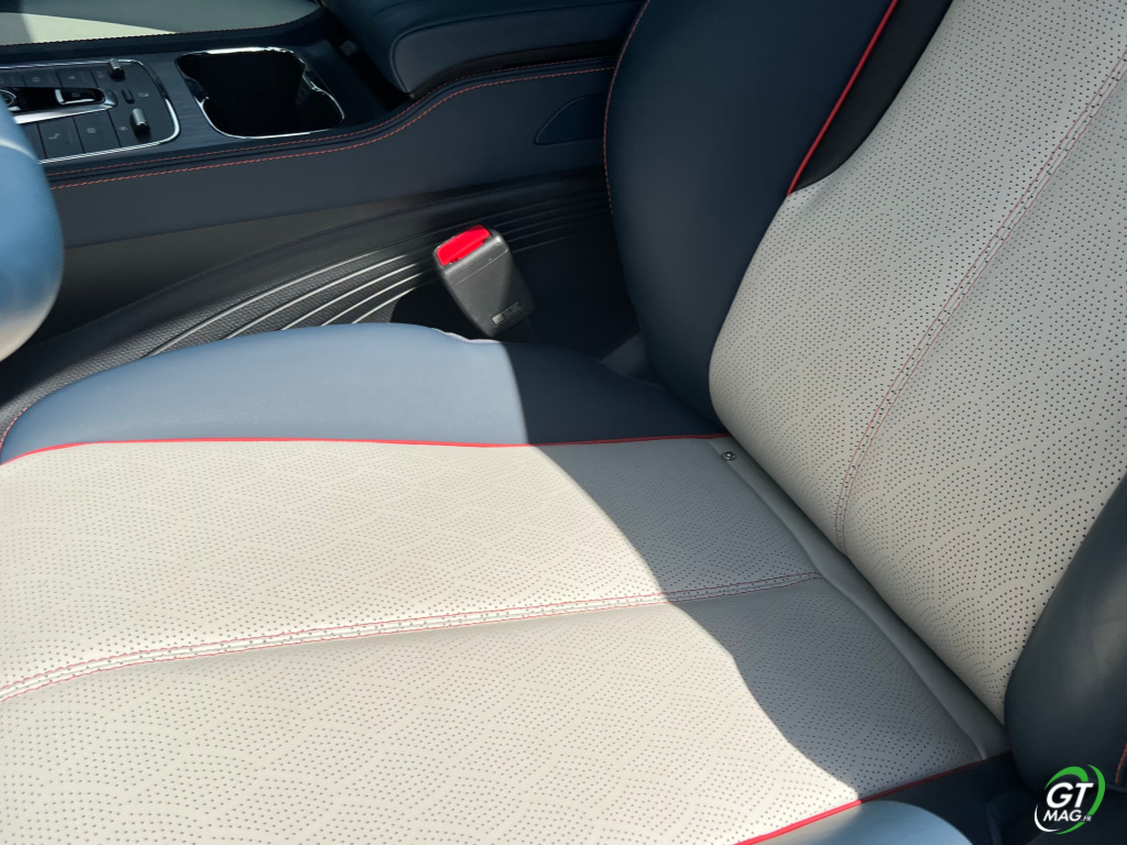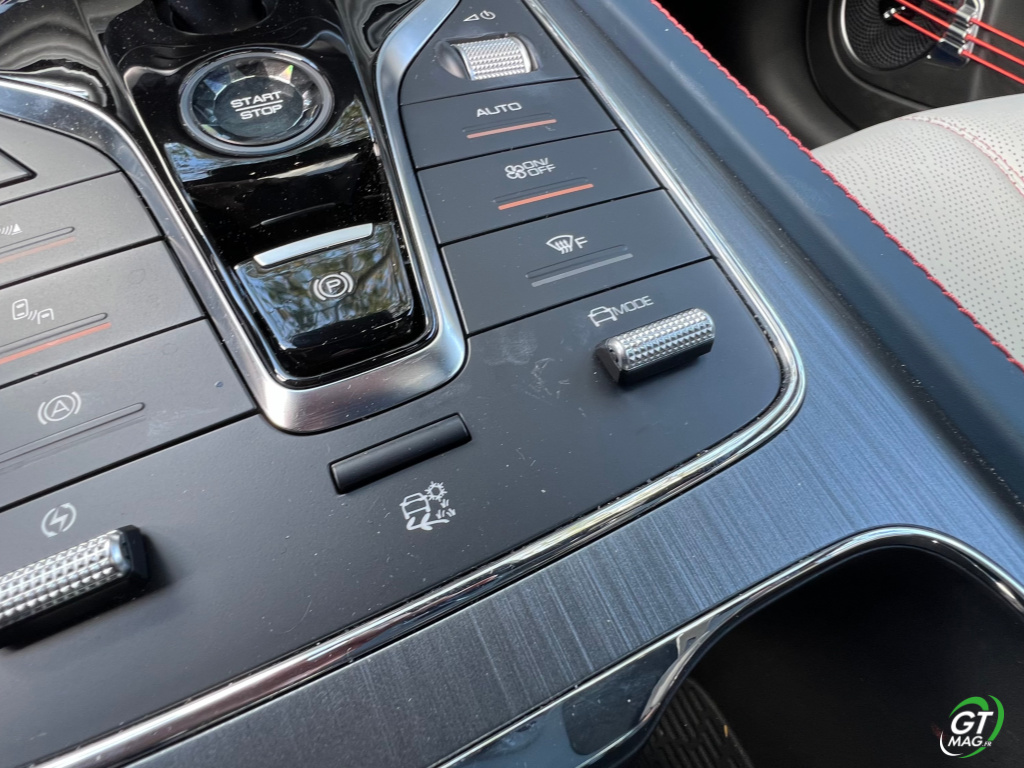 La récupération d'énergie par le biais d'une pédale d'accélérateur n'est malheureusement pas prévue. Il y a une option pour régler la récupération sur standard ou high, pas de grande différence à notre goût. Dommage, la pédale unique est une solution bienvenue et apaisante dans notre circulation urbaine et péri-urbaine, notre trafic lent sur la rocade et l’autoroute, en combinaison avec le régulateur de vitesse actif. Le chargement des batteries peut se faire sur courant alternatif jusqu'à 11 kW en standard, sur le chargeur rapide en courant continu jusqu'à 88 kW avec 80% de récupération de charge en 30 minutes… Un boitier mural de 11 kW vous est proposé en option à l’achat du véhicule…