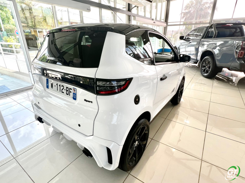 AIXAM présente donc sa nouvelle gamme AMBITION avec de nouvelles faces avants plus racées dont la sigature est forcément la nouvelle calandre plus élégante et un arrière restylé… Oui dans le domaine des voiturettes pour rester leader de son marché AIXAM met le paquet pour assurer a sa clientèle sécurité, design, insonorisation et confort intérieur… Pour notre CYTY SPORT en Martinique et Guadeloupe vous bénéficiez de la calandre et du bandeau arrière design noir brillant, du combiné de bord avec écran matrice active TFT 3,5’’, du"Pack toit rouge nacré ou noir" avec coquilles de rétroviseurs, signature grilles pare-chocs et toit noir, et enfin de jantes 15’’ noires…