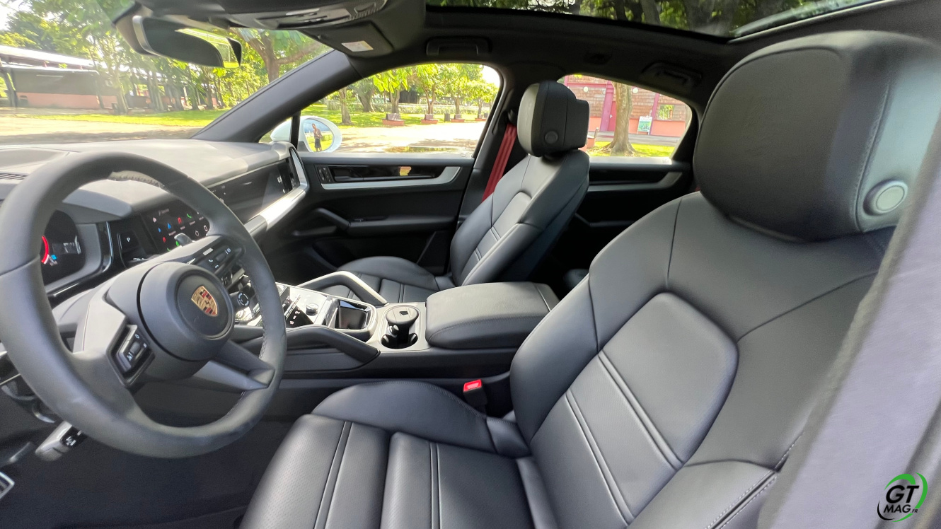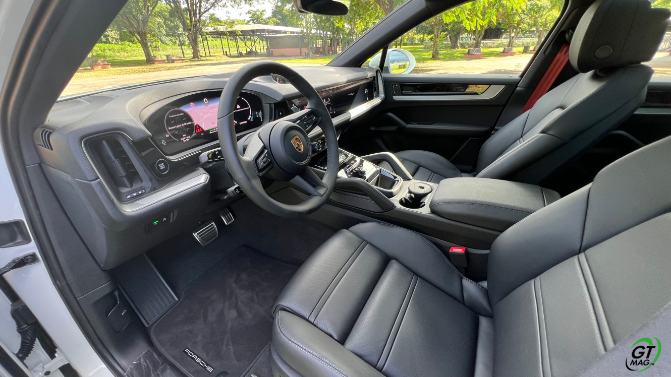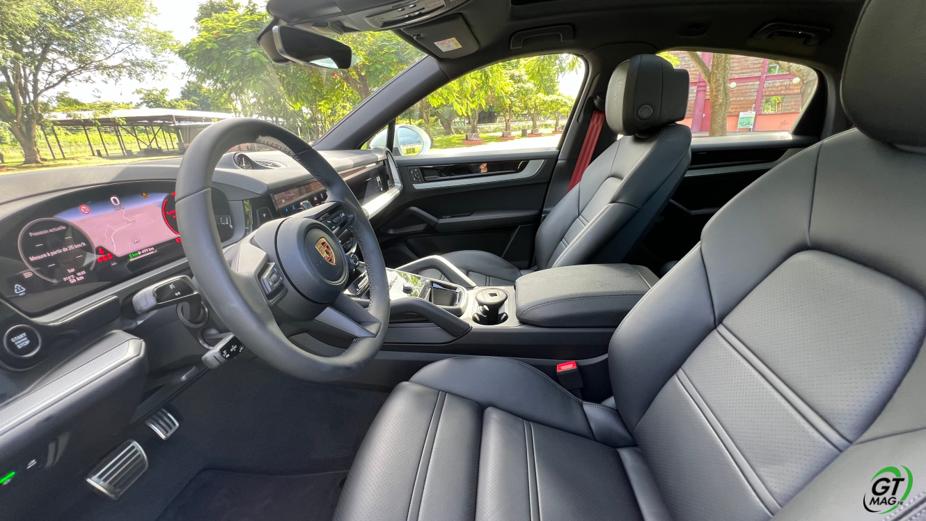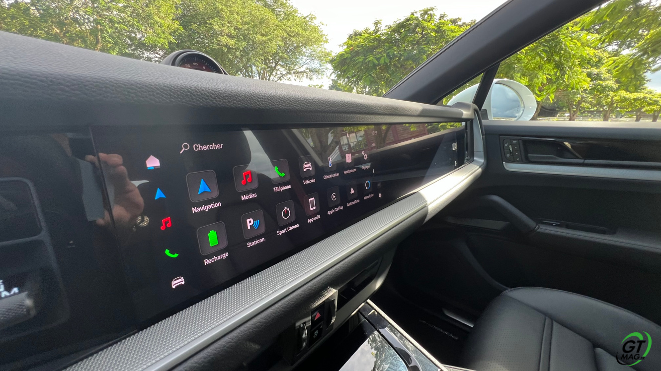 L’habitacle du nouveau Cayenne reçoit un écran de 12,3 pouces intégrant une interface multimédia qui gagne en convivialité. La console centrale abandonne l'ancien levier de vitesse (relocalisé à droite au volant) et délaisse les boutons physiques pour des touches à retour haptique. Heureusement que Porsche a conservé des commandes avec de petites barres en aluminium pour contrôler la température et la ventilation. L’espace abonde à l’avant comme à l’arrière, et le coffre peut engloutir 772 litres de bagages. C’est toutefois moindre à bord du modèle coupé, qui voit le volume de chargement descendre à 692 litres. La lunette arrière rétrécie diminue aussi la visibilité vers l'arrière.