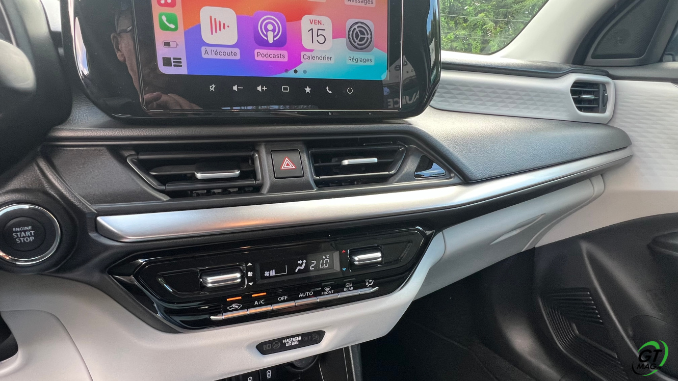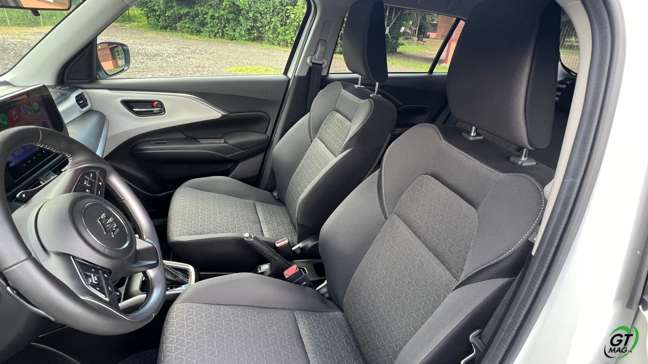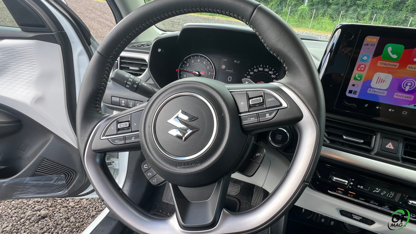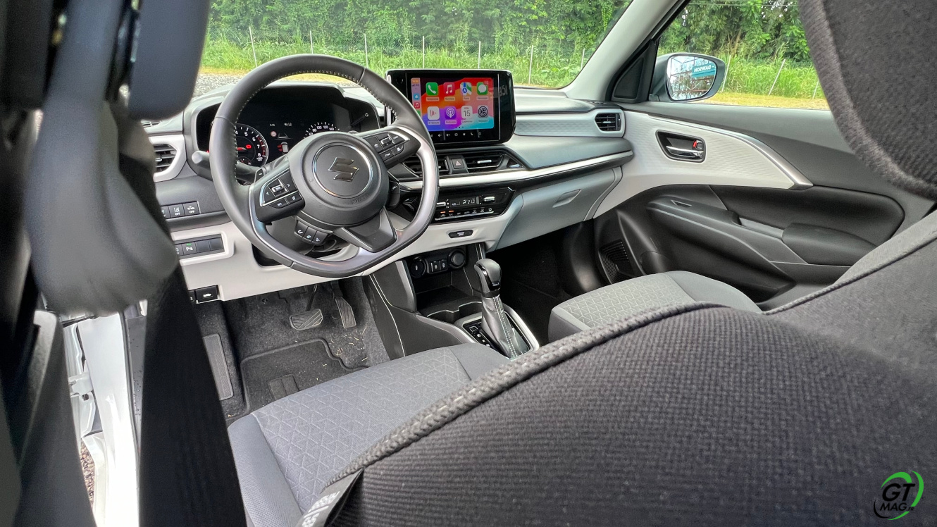 La Swift de 4eme génération est équipée de nouvelles aides à la conduite de niveau 2 (freinage actif d’urgence, aide au maintien dans la voie, surveillance de l’attention du conducteur…), il faut souligner qu’elles sont plutôt bien calibrées mais aussi facilement éliminable pour les clients les plus retissant. Sur la route j’ai aimé la douceur de l’embrayage qui facilite l’usage quotidien dans nos ralentissements et pour un usage quotidien en ville…
