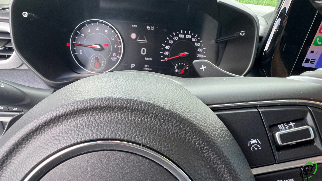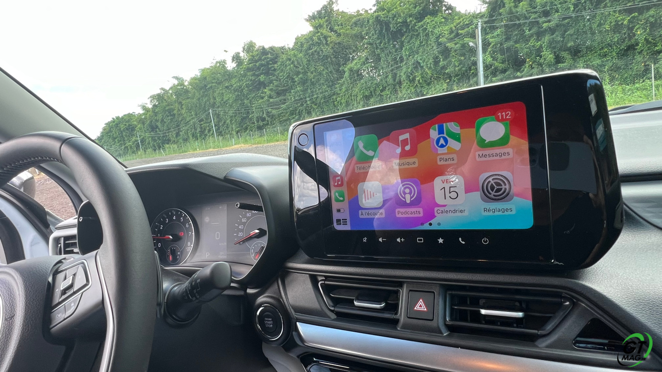 A l’intérieur, une nouvelle planche de bord bi-ton se tourne vers le conducteur et son passager, l’ergonomie est quasi parfaite… Le tableau de bord se dote d’un écran tactile de 9 pouces orienté vers le conducteur qui intègre les connections USB et Wi-Fi®. Il prend en charge Apple CarPlay® et Android Auto™ permettant l’usage de nombreuses applications il est associé à un écran à aiguilles qui vient parfaire les informations de conduite. L’ensemble est de bonne qualité même si l’assemblage est parfois un peu leger…