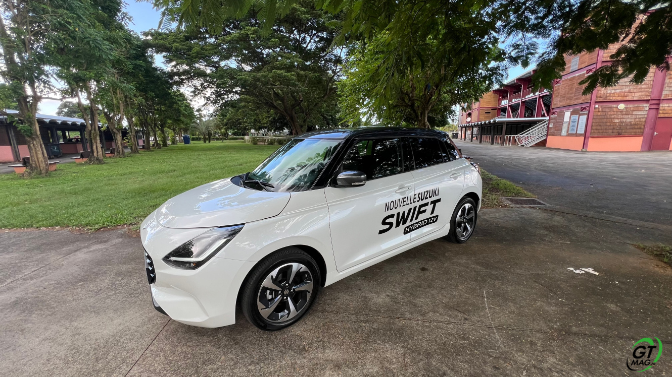 Heureux de nous retrouver avec Suzuki Martinique pour l’essai de la Nouvelle SWIFT 4ème génération en version mild-Hybrid avec le Moteur 1.2 Dualjet Mild Hybrid… Elle s’équipe soit de la boîte de vitesses manuelle 5 rapports ou de la boîte automatique CVT avec une Transmission 2 ou 4 roues motrices AllGrip… L’idée de la marque ? Repenser un peu l'esthétique tout-en conservant les codification stylistique du modèle, modèle conçu, souvenez-vous, en partenariat avec General Motors, et apparu pour la première fois au Salon de Tokyo en octobre 1983… La nouvelle Suzuki Swift se veut ultra-connectée avec un intérieur tourné vers le confort du conducteur et de ses passagers… Départ de la concession Suzuki Martinique.