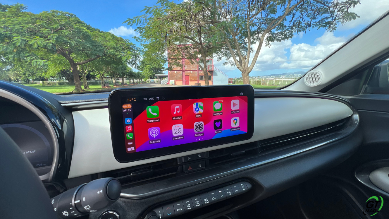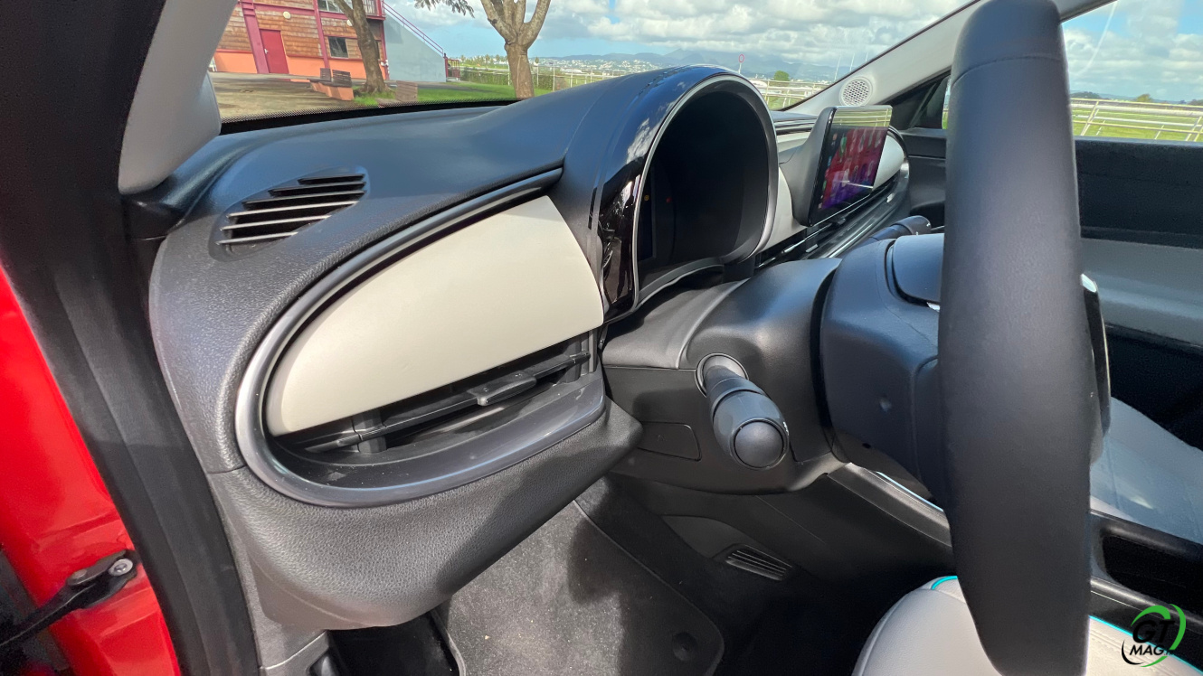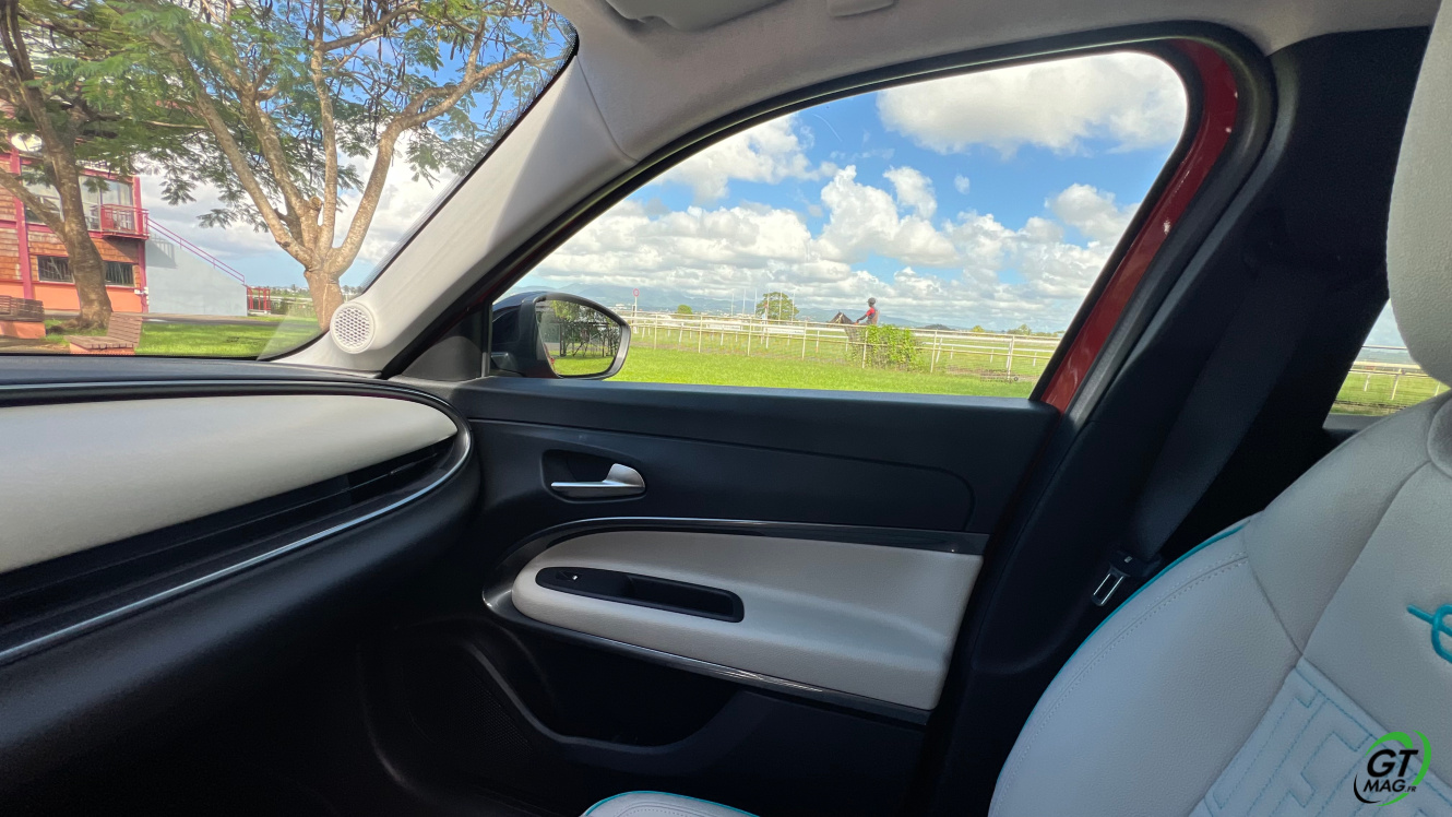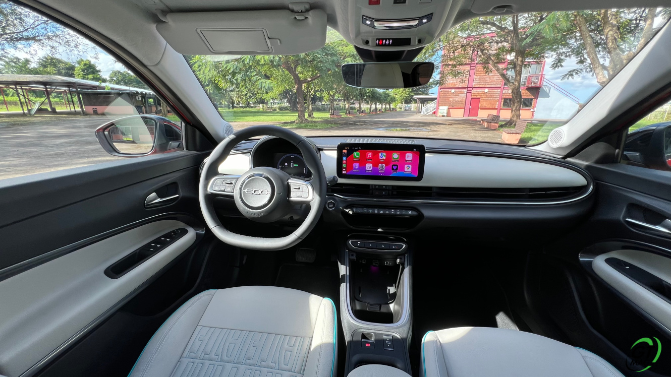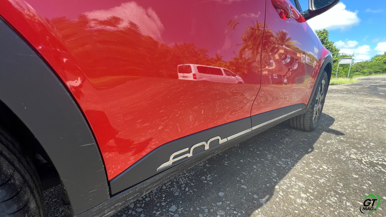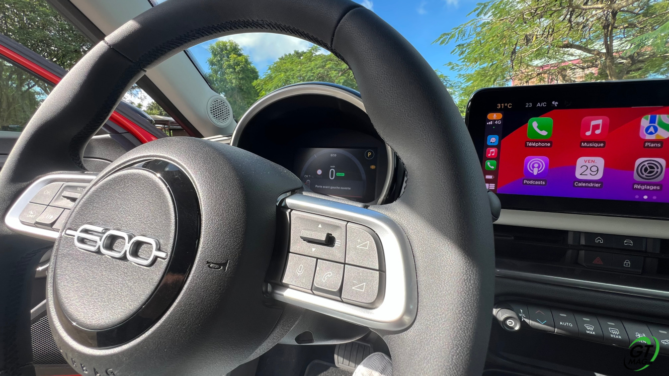 La nouvelle Fiat 600e est disponible en deux versions. La version de base, appelée RED, est proposée disponible en blanc ou en noir, en plus de la couleur rouge obligatoire. Ceux qui veulent une Fiat grise peuvent l'oublier, car Fiat a récemment décidé de ne plus vendre de voitures grises. Pour monter dans les options, vous avez la ‘La Prima’ notre essai ce matin en Martinique avec un meilleur équipement de série et un plus grand choix de couleurs. Elle propose même un siège massant à l'avant, des jantes en aluminium plus grandes, l'accès sans clé et du cuir végétal ou le hayon à ouverture électrique entre autres. Il faut lire notre article pour avoir toutes les options de la voiture le lien est sur cet essai…
