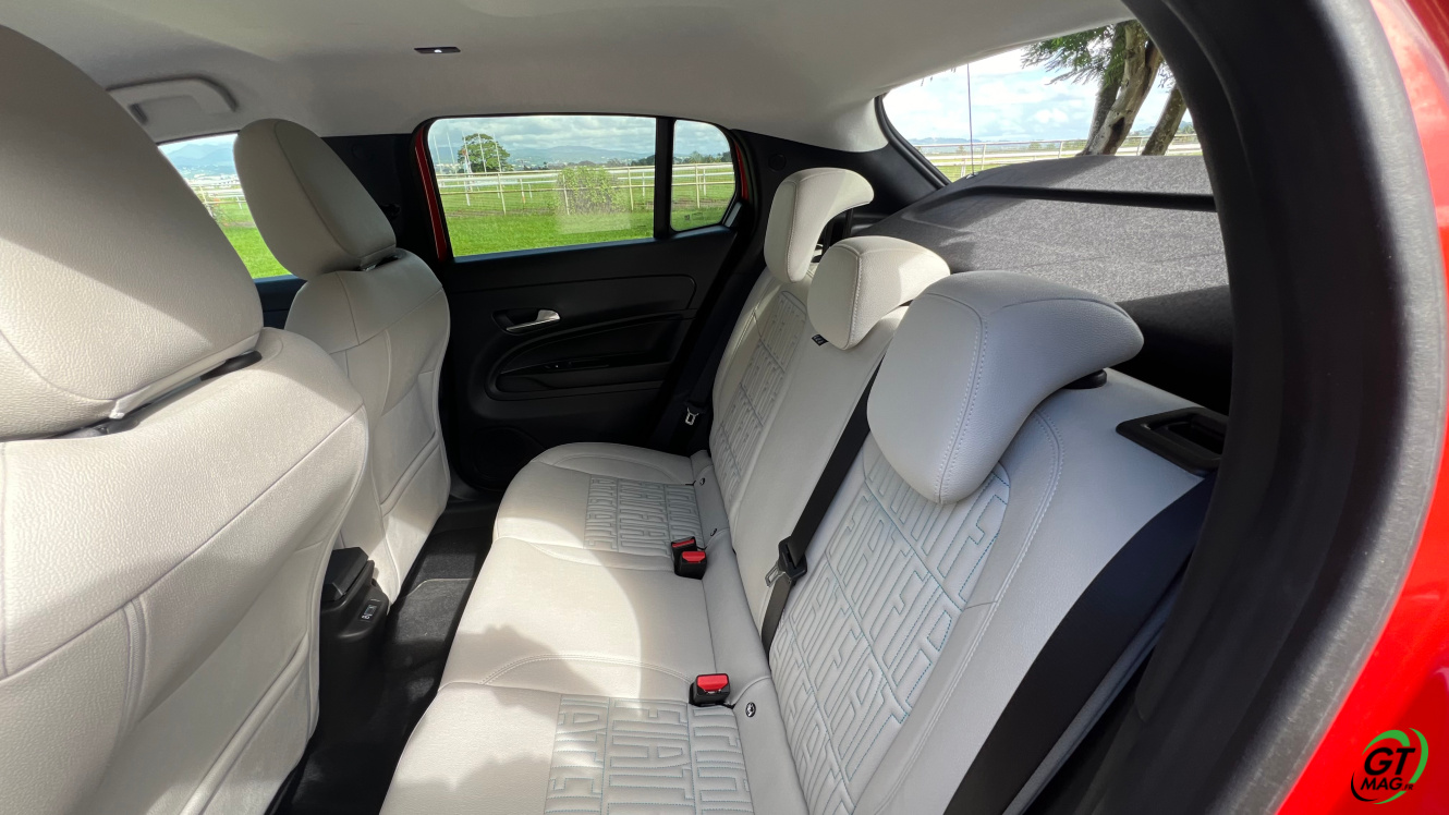 Parmi les équipements inclus dans cette version, on compte deux haut-parleurs supplémentaires (6 au total au lieu de 4), des aides à la conduite permettant une conduite semi-autonome de niveau 2, une caméra de recul offrant une vue à 180 degrés (seulement), des capteurs de stationnement à 360 degrés, un chargeur à induction pour smartphone, un éclairage d’ambiance, un hayon électrique mains-libres, quelques éléments chromés sur la carrosserie, des choix de couleurs intérieures spécifiques, une fonction de massage pour le siège du conducteur, ainsi qu’un système de navigation GPS, qui est absent du système de base mais qui prend en charge la réplication smartphone via Apple CarPlay ou Android Auto.