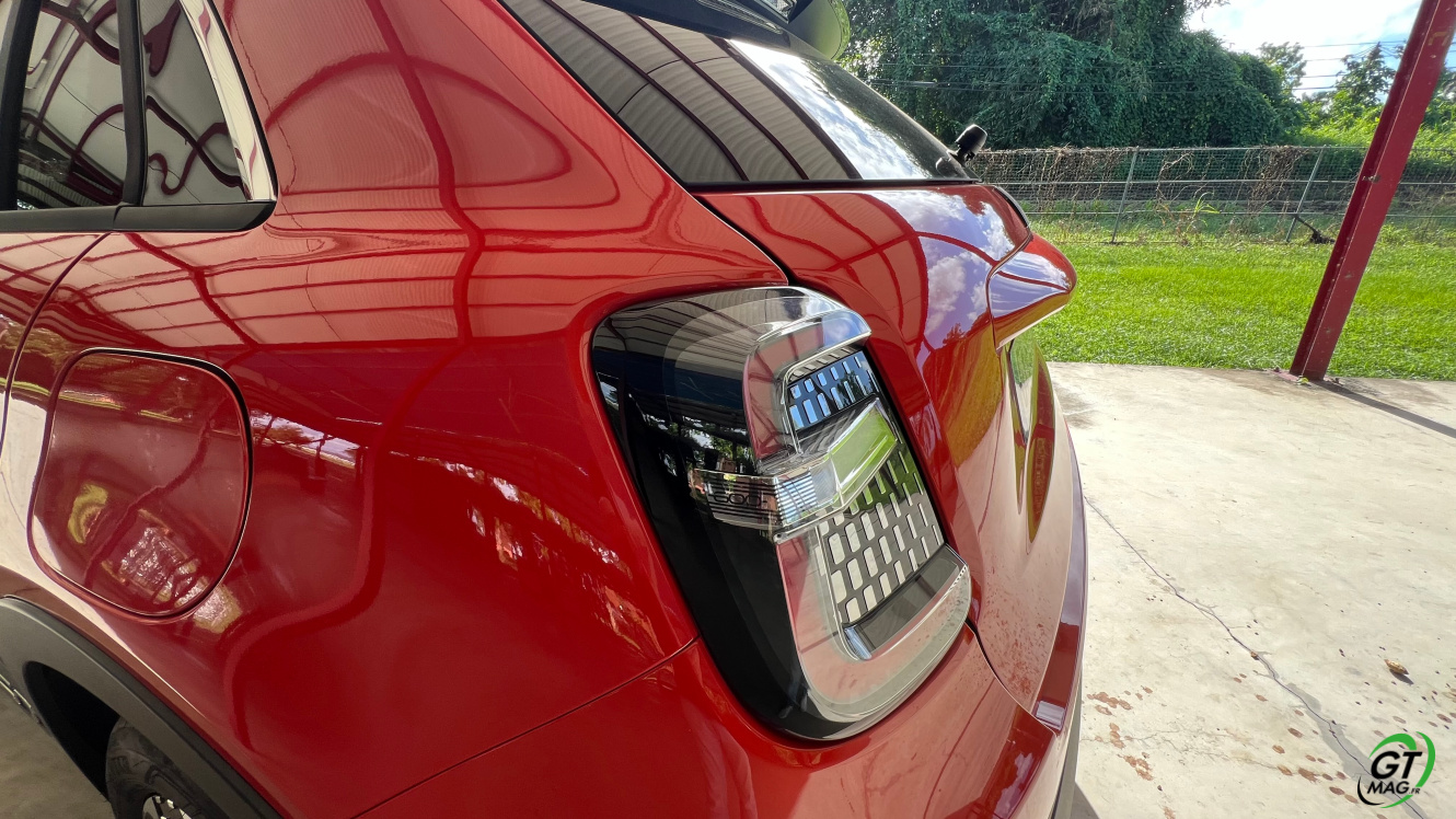 Les courbes se veulent plus arrondies plus séduisantes peut-être et même surement pour accentuer son côté italien… Le surclassement selon FIAT avec un air de Dolce Vita… De plus comme toutes les Fiat depuis quelques mois : il n’y a pas de couleurs ennuyeuses au catalogue on va le voir dans un instant… Sur la partie arrière, on note aussi les similarités avec le modèle des années 50. D’abord dans la forme du hayon, ensuite dans les blocs optiques séparés. Trop content de voir une auto lancée en 2023 sans une grande barre lumineuse à l’arrière !