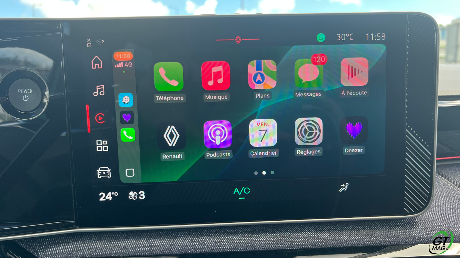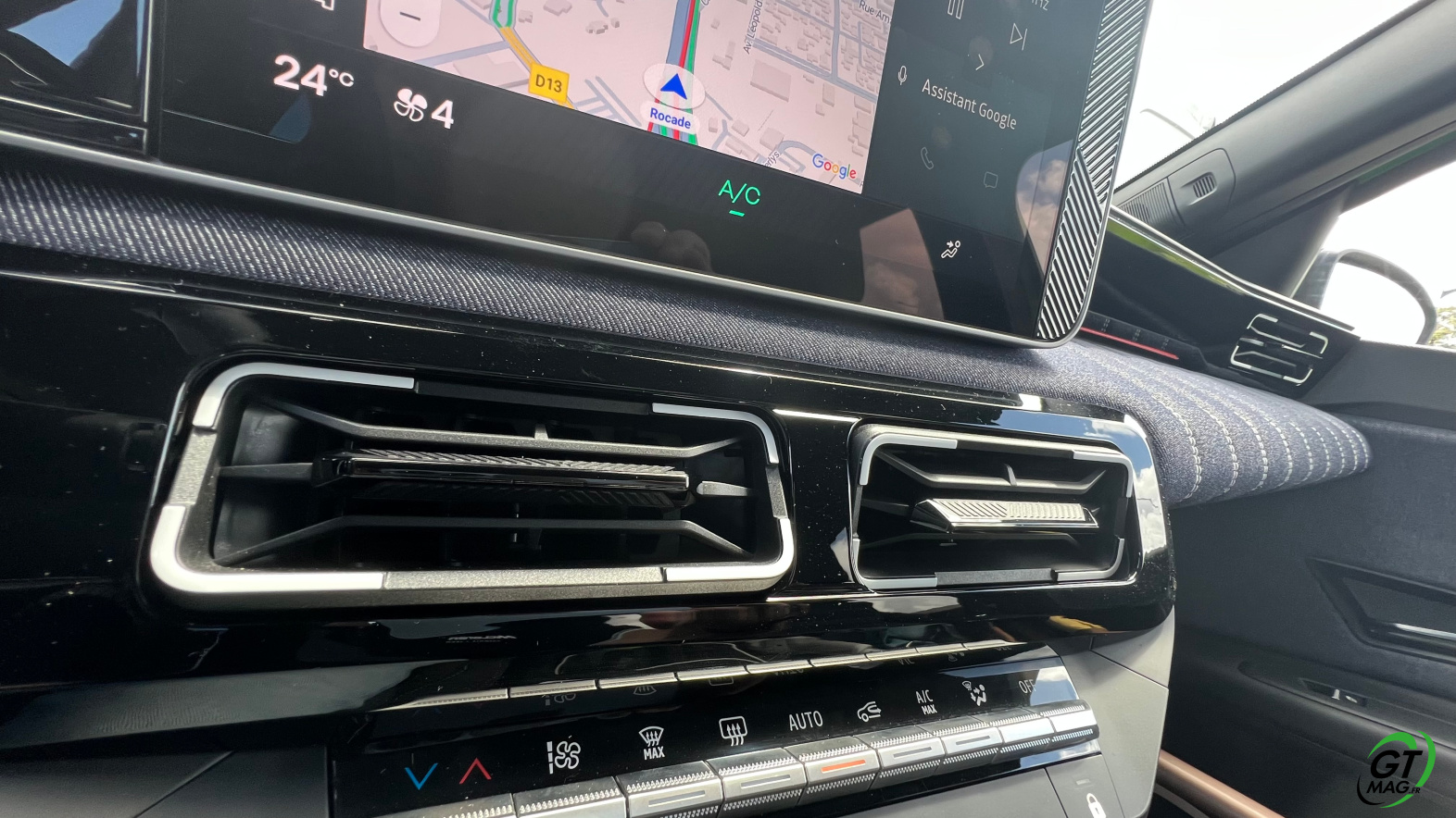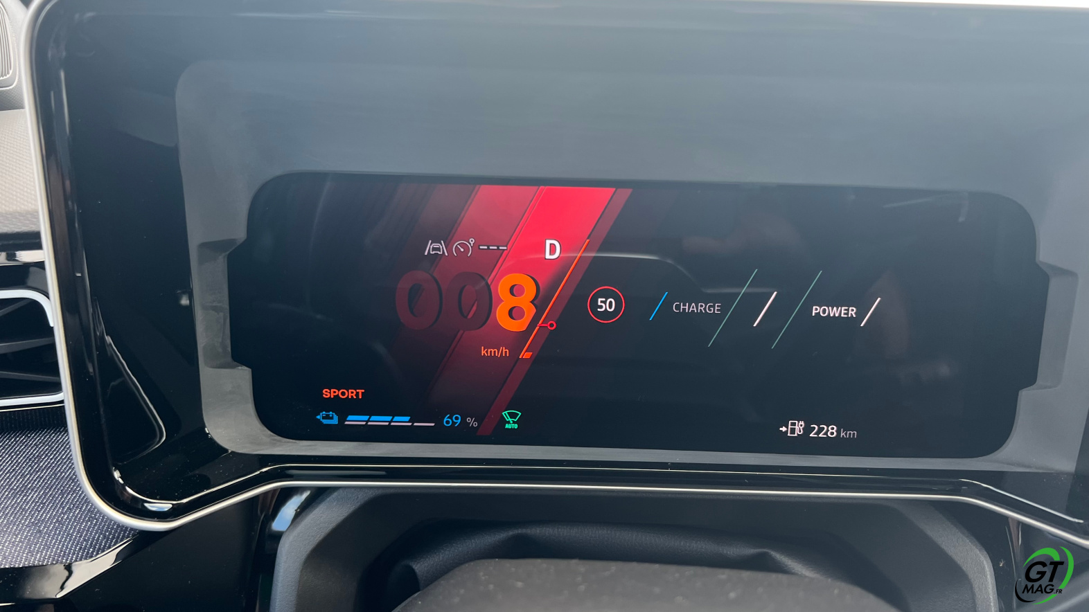A l’intérieur Renault réussi à mêler des impressions ’Vintages’ et l’hyper technologie avancée selon notre époque sur sa R5… Côté infotainment, on retrouve Android Automotive, toujours aussi fluide et intuitif, ainsi que tous les services Google. Maps est donc de la partie aux côtés d’une cinquantaine d’applications ainsi que de l’assistant vocal « Reno » lui-même lié à ChatGPT, vous pourrez alors lui poser toutes les questions qui vous passent par la tête ! Le compteur digital de 10″, tout comme l’écran central, propose quant à lui différents affichages personnalisables dont un avec le GPS au centre.