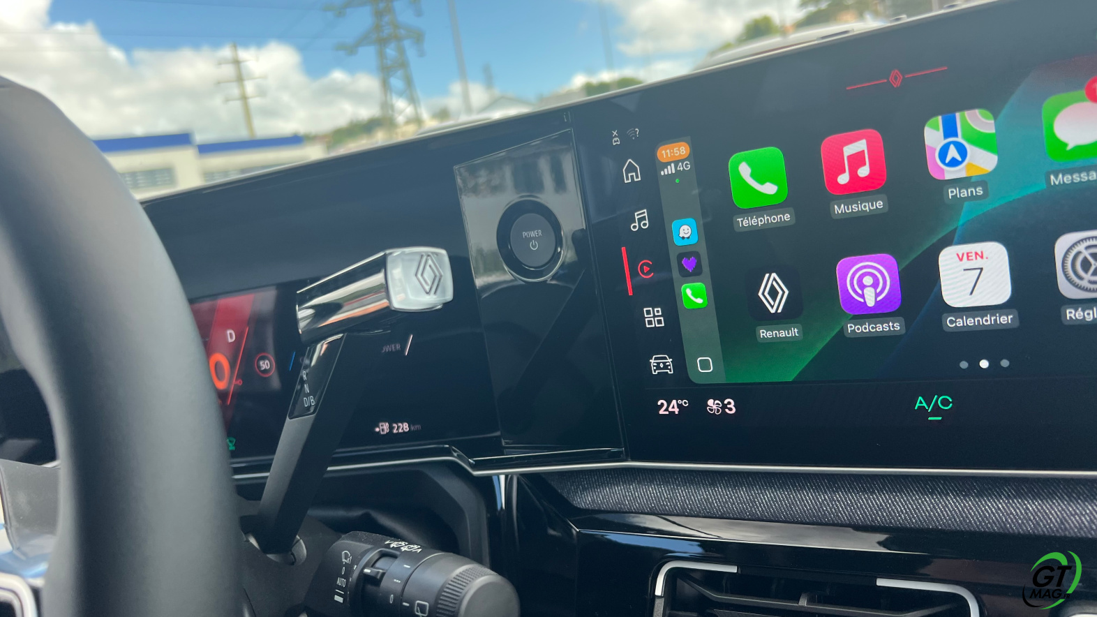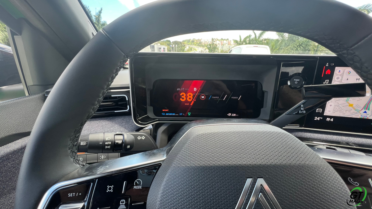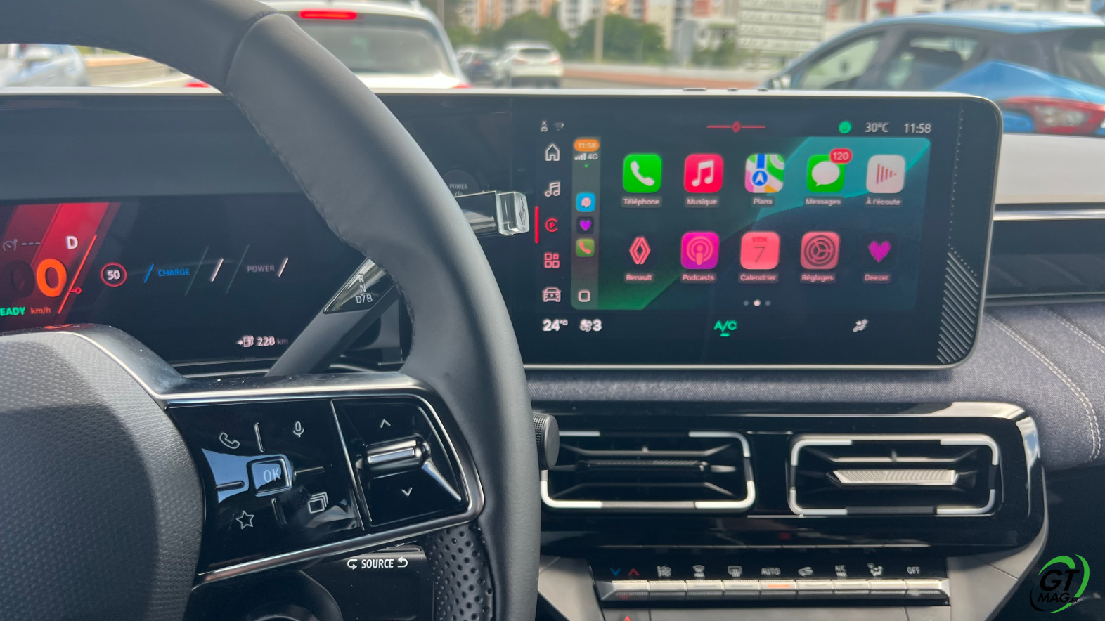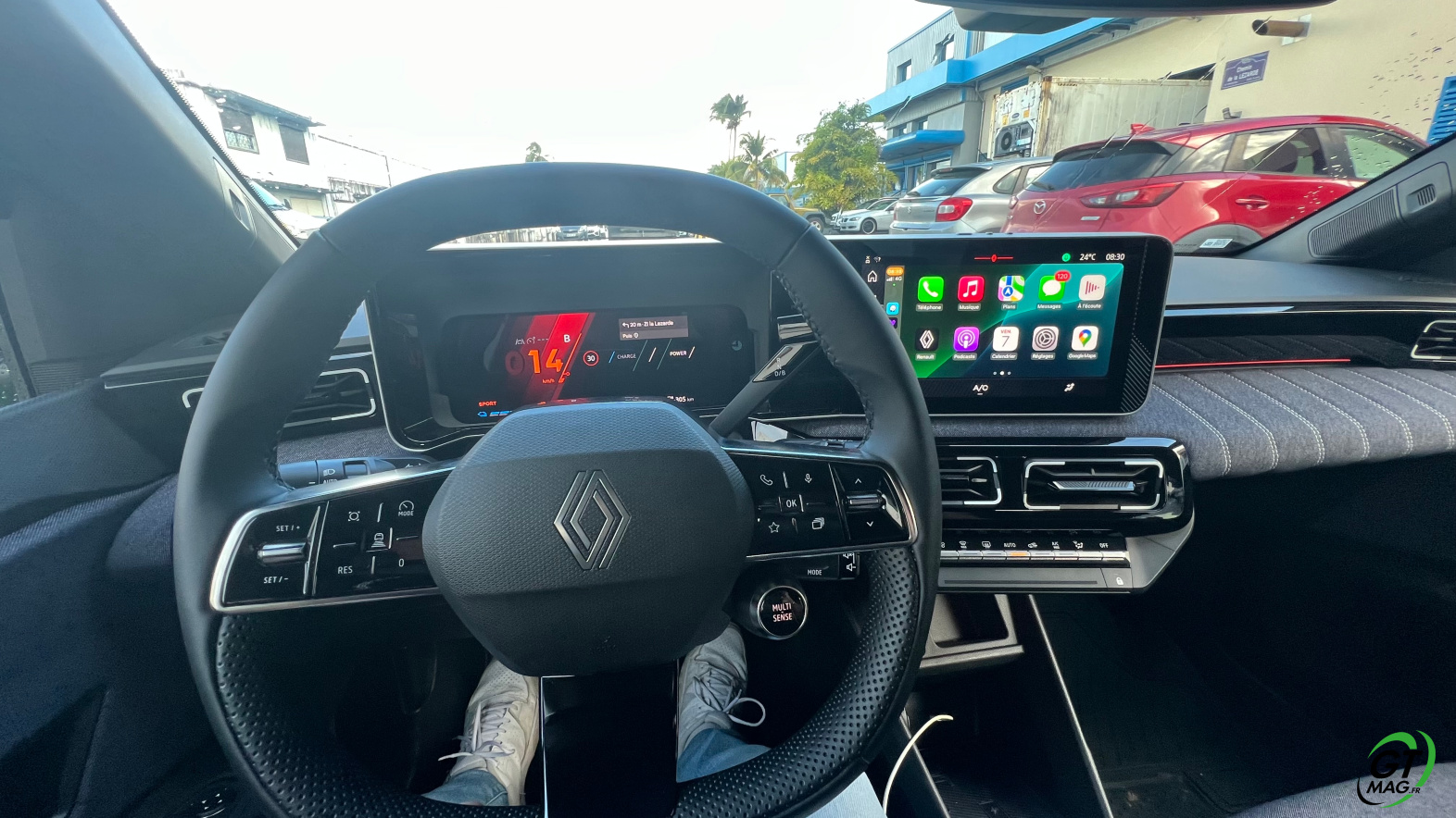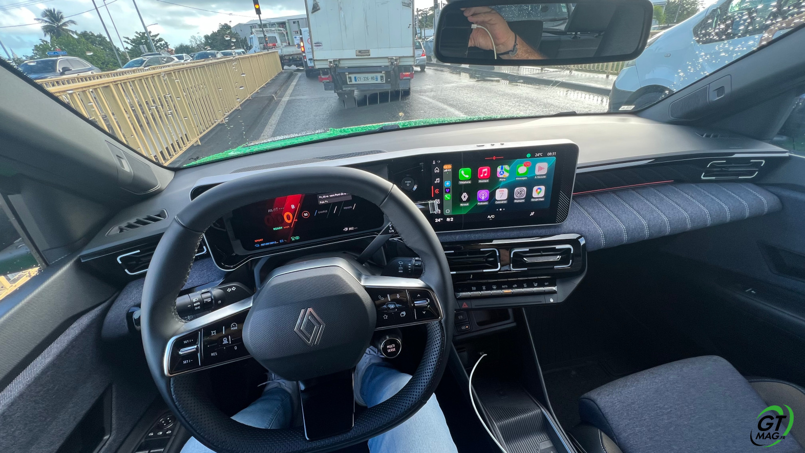 La recharge de 15 à 80% se fera en 30 minutes grâce à la prise CCS Combo encaissant jusqu’à 100 kW en pic. La prise Type 2 encaisse quant à elle 11 kW. Notez que la puissance de charge sur la batterie de 40 kWh sera limitée à 80 kW. En termes de consommation, il faudra compter avec une moyenne de 15,1 kWh/100 km pouvant aller jusqu’à 20 kWh sur notre rocade ou notre autoroute en mode conduite agressive… On notera la présence de l’assistant vocal “Hey Reno” entrainé par ChatGPT. La suite complète d’ADAS de niveau 2 est de la partie, obéissant à la norme européenne GSR2. Côté conduite sur nos routes, puissance suffisante et dimensions taillées pour la ville font de notre R5 E-Tech la reine de nos conditions de circulation et de la typologie de nos îles…