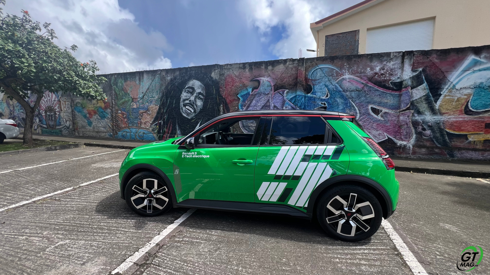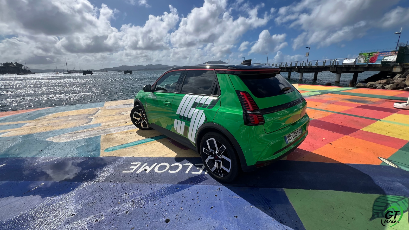Pop, malicieuse, accueillante, ce sont les propres mots de la marque la Renault 5 E-Tech veut électriser son époque alors souhaitons-le en Martinique car seulement 5% des habitants de notre île ont joué le jeu des nouvelles mobilités pour la préservation de notre beau caillou et aussi surement de notre la planète… Renault 5 veut électriser son époque c’est le souhait de la marque… Avec un design à la fois rétro et futuriste on remarque les courts porte-à-faux, les formes carrées, les feux arrière verticaux…Et même l’entrée d’air sur le capot ! Enfin, pour cette R5, elle est remplacée par un indicateur de charge avec le chiffre 5 qui se divise en cinq barres correspondantes chacune à 20 % de batterie.