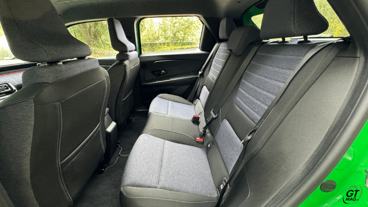 A l’arrière de la Renault 5 E-Tech électrique l’espace aux jambes à l’arrière est suffisant même pour un grand gabarit de grande taille, les genoux seront assez hauts par rapport à l’assise. Celle-ci se montre tout de même confortable, j’aurais juste apprécié une prise USB afin que les passagers puissent recharger leurs téléphones sans se brancher à l’avant. Le coffre, très profond, propose quant à lui 326 L de chargement et jusqu’à 1106 L une fois la banquette divisée en 40/60 rabattue. Mais plus encore, l’ambiance chaleureuse et typiquement seventies auprès du public semble marquer des points. Lorsque l’on entre dans la Renault 5, une cinématique sonore vous accueil conçue en collaboration avec Jean-Michel Jarre, elle produit également un son généré sous les 30 km/h pour prévenir les piétons de l’approche d’un véhicule.