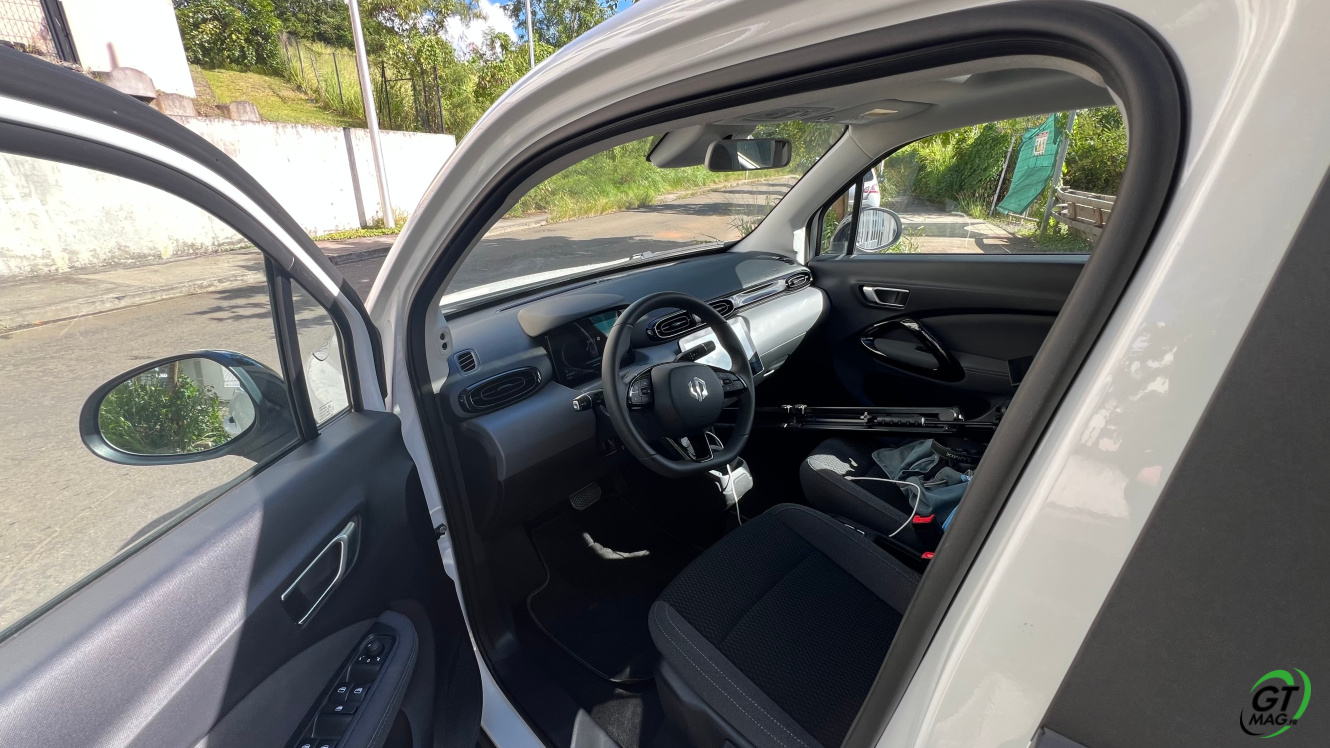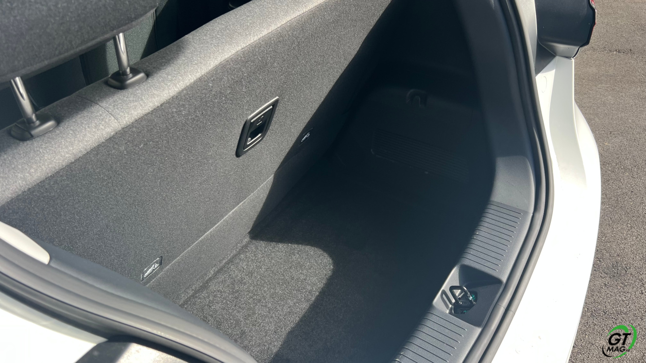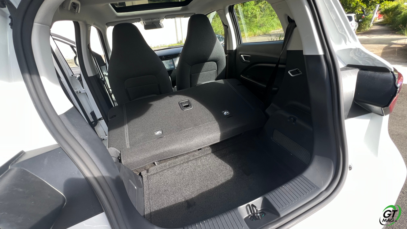 Avec une longueur de 3,62 m, la T03 est 10 cm plus courte qu’une Dacia Spring et 5 cm plus courte qu’une Fiat 500e. En largeur, ses 1,62 m sont à comparer au 1,58 m de la Dacia Spring ou au 1,68 m de la 500e. Quant à la hauteur, son 1,57 m de haut permet de loger deux grands adultes à l’arrière ce qui n’est pas vraiment possible dans la Spring ou 2 enfants dans leurs sièges (ou réhausseurs) respectifs sur la banquette qui se rabat d’une seule pièce… Ce qui est amusant quand on sait que certains gros SUV coupés ne le permettent pas. Le coffre propose 210 l de volume c’est tout de même rikiki, c’est moins que la Spring à 270 l mais mieux que la 500e à 185 l. Ce coffre passe à 880 L sièges rabattus…