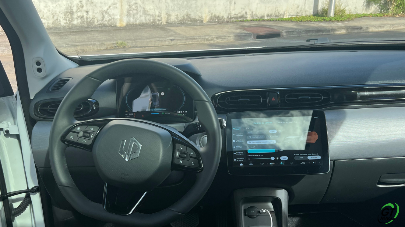 Côté route s’ajoute à la douceur de la propulsion électrique, des commandes plutôt agréables dans un environnement urbain. La définition de la dalle d'instrumentation de 8 pouces et de l'écran tactile de 10,1 pouces est à la hauteur des exigences. Cet écran qui commande l'intégralité des fonctions du véhicule, dont la climatisation, mais oblige parfois à naviguer sur les nombreux menus et sous-menus. C'est le prix à payer pour profiter d'une atmosphère épurée mais de bonne facture finalement dans une ambiance illuminée du beau soleil Martiniquais grâce à son toit panoramique. N’oublions pas que ma LeapMotor T03 doit permettre à beaucoup aux Antilles et en Martinique de pouvoir enfin s’équiper d’un véhicule électrique avec une tarification raisonnée… Elle est proposée à partir de 22.990 euros par Peugeot Martinique depuis quelques jours…