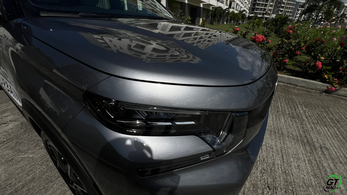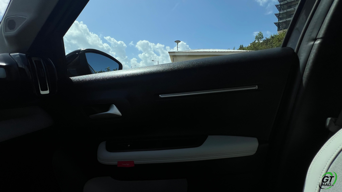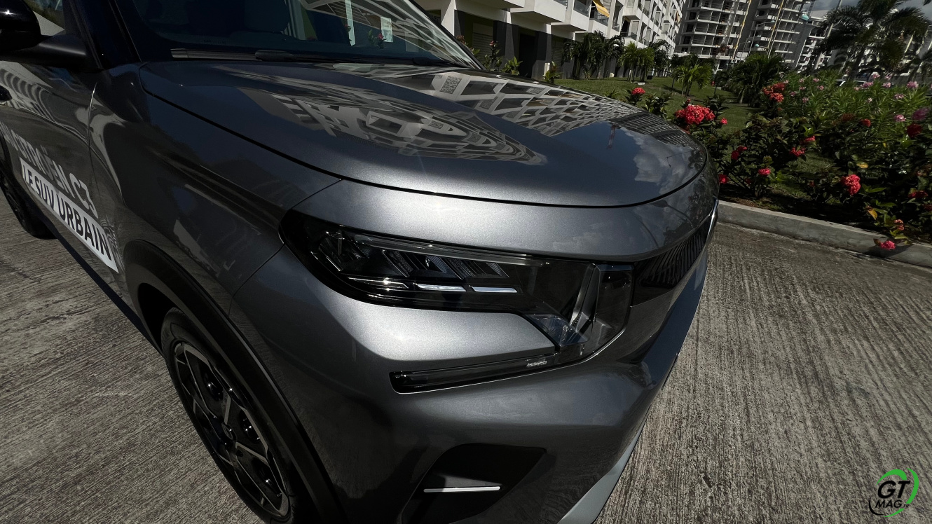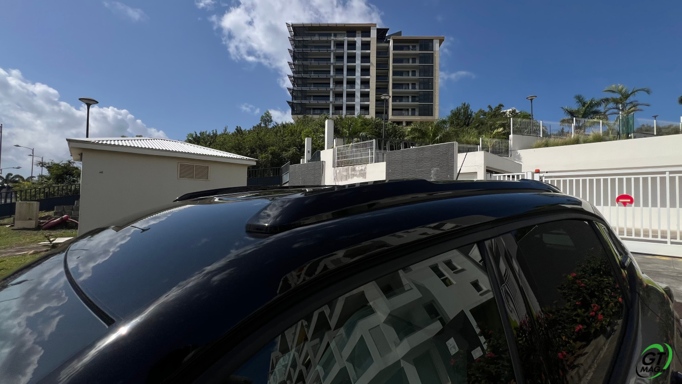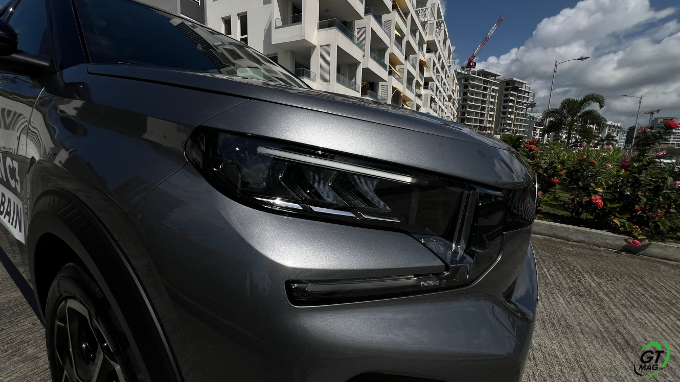Le premier niveau, « You », est bien pourvu : suspensions « Citroën Advanced Comfort » nouveau système d’affichage tête haute « Citroën Head Up Display », station d’accueil pour smartphone, reconnaissance des panneaux de vitesse ou encore allumage automatique des feux de croisements. Le second, « Max », notre essai de ce matin en Martinique ajoute les jantes de 17 pouces (la version « You » n’a que des enjoliveurs, de 16 pouces), une peinture bi-ton, des barres de toit, un écran tactile de 10,25 pouces, une banquette arrière fractionnable 2/3 – 1/3 ou la climatisation automatique. La Citroën C3 se distingue par un design extérieur audacieux, intégrant des lignes plus dynamiques et des éléments stylistiques modernisés. La face avant arbore une calandre élargie, dotée du nouveau logo de Citroën, et des feux led effilés, qui lui confèrent une identité visuelle forte. Le style général s’apparente à celui d’un SUV. Finalement, l’image est bien plus moderne pour cette nouvelle C3.