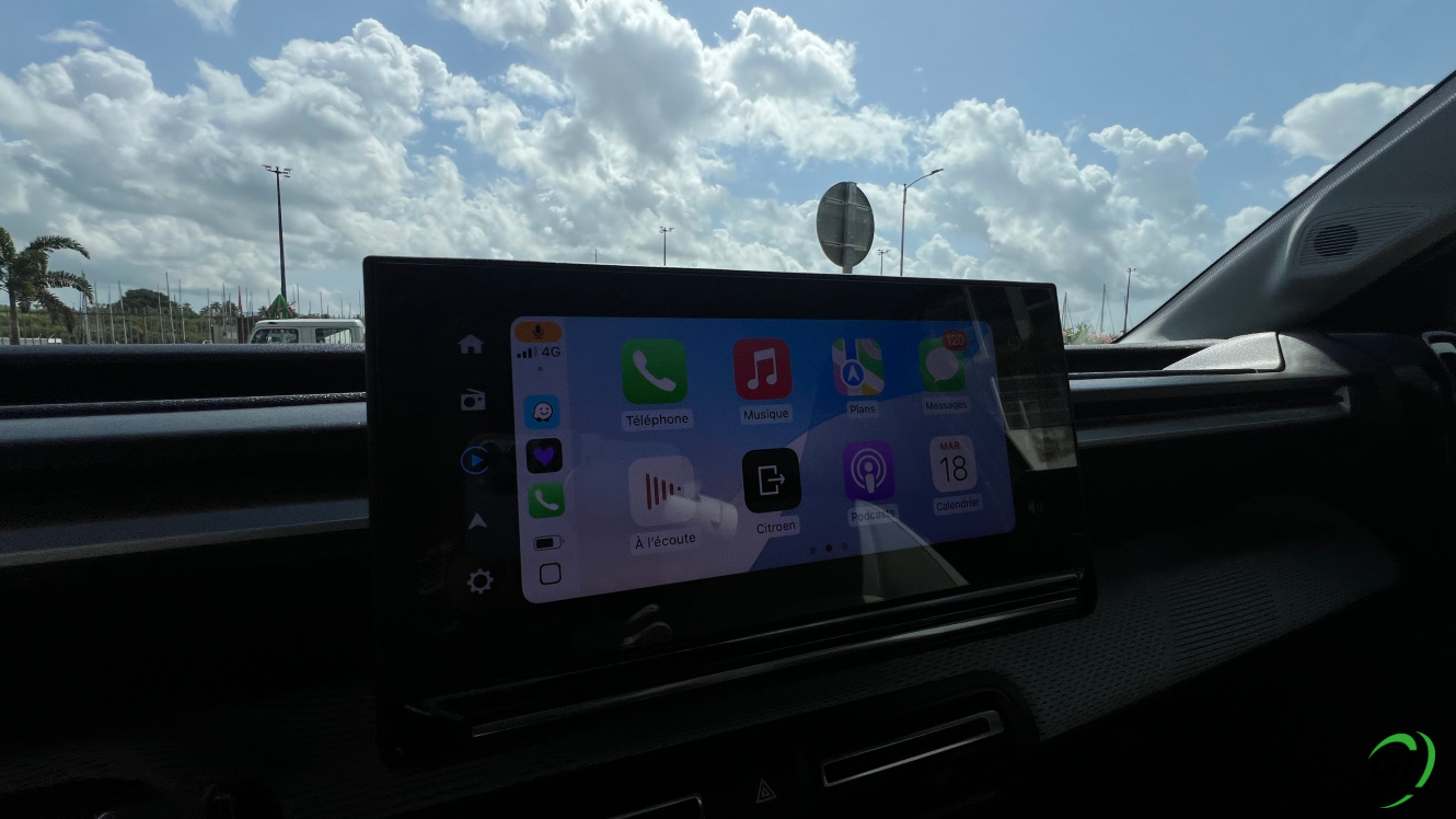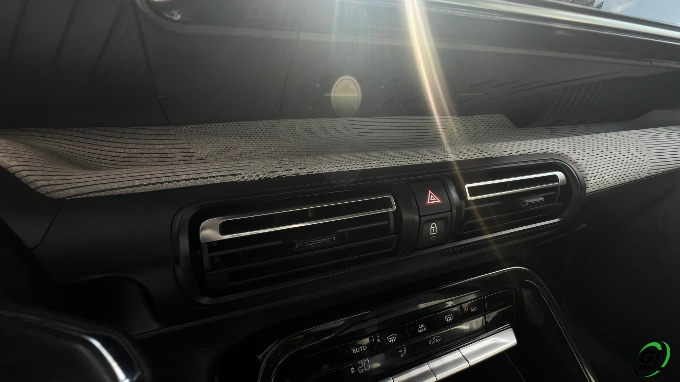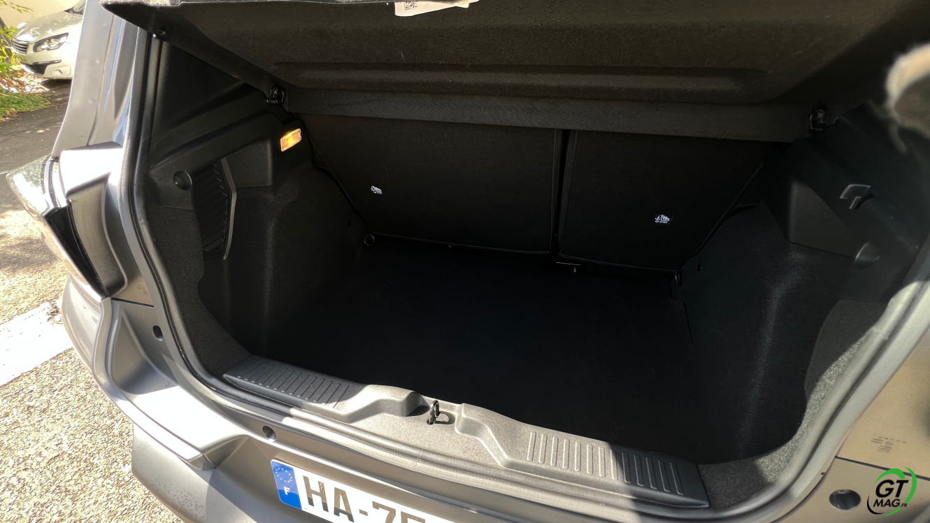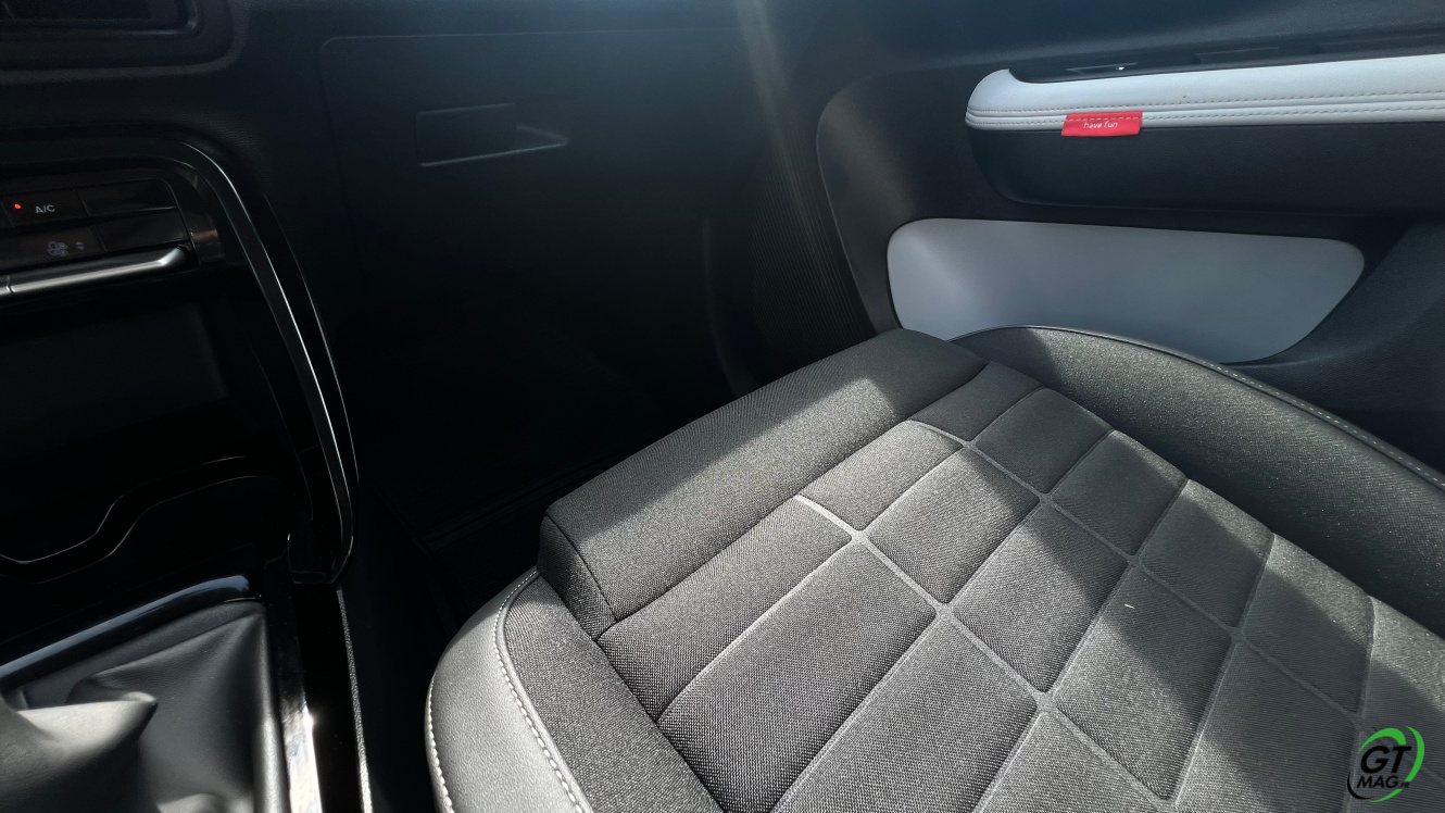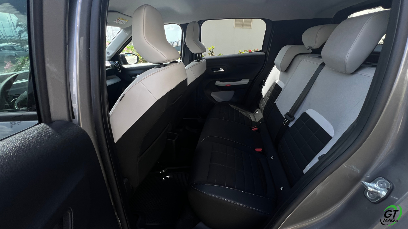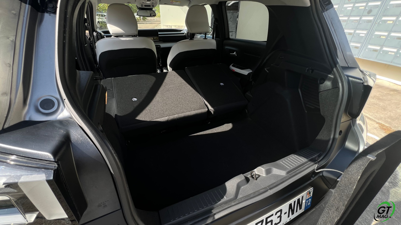L’intérieur a été entièrement repensé pour offrir un confort optimal. Les sièges, inspirés de ceux du modèle C4, bénéficient d’un nouveau rembourrage, offrant un excellent soutien pour les longs trajets, disponible sur le niveau Max. La qualité des matériaux a été revue à la hausse, tout comme la position de conduite. Par ailleurs, elle dispose d’un petit volant, au-dessus duquel le conducteur peut contrôler les compteurs. Cependant, la qualité des plastiques fait les frais des réductions de coûts. Une bande textile qui recouvre la planche de bord permet de sauver cet habitacle d’une ambiance trop austère. Le coffre est vaste, avec ses 310 litres. Son accès n’est pas aisé et les sièges arrière ne sont pas modulables. L’habitacle dispose d’un écran tactile central de 10 pouces, intégrant le système d’infodivertissement Citroën Connect, compatible avec Apple CarPlay et Android Auto.