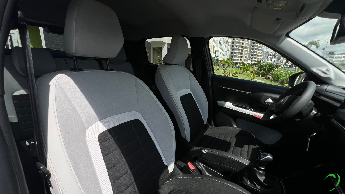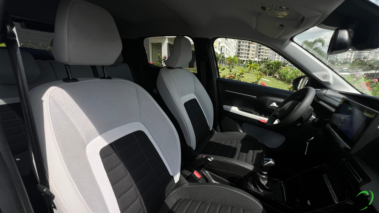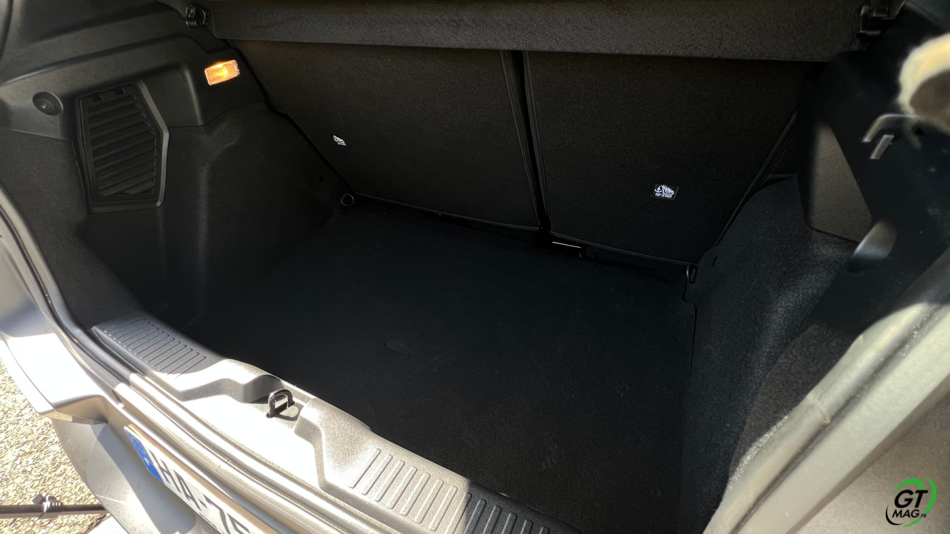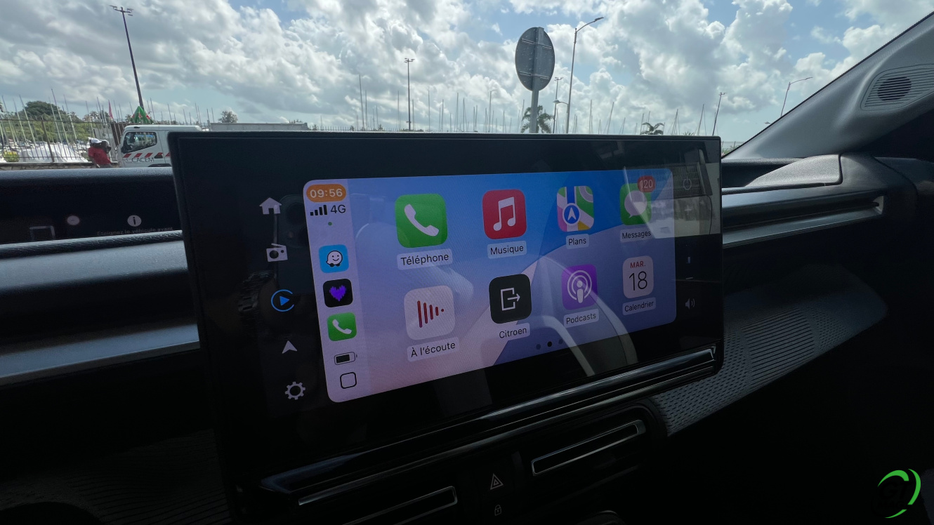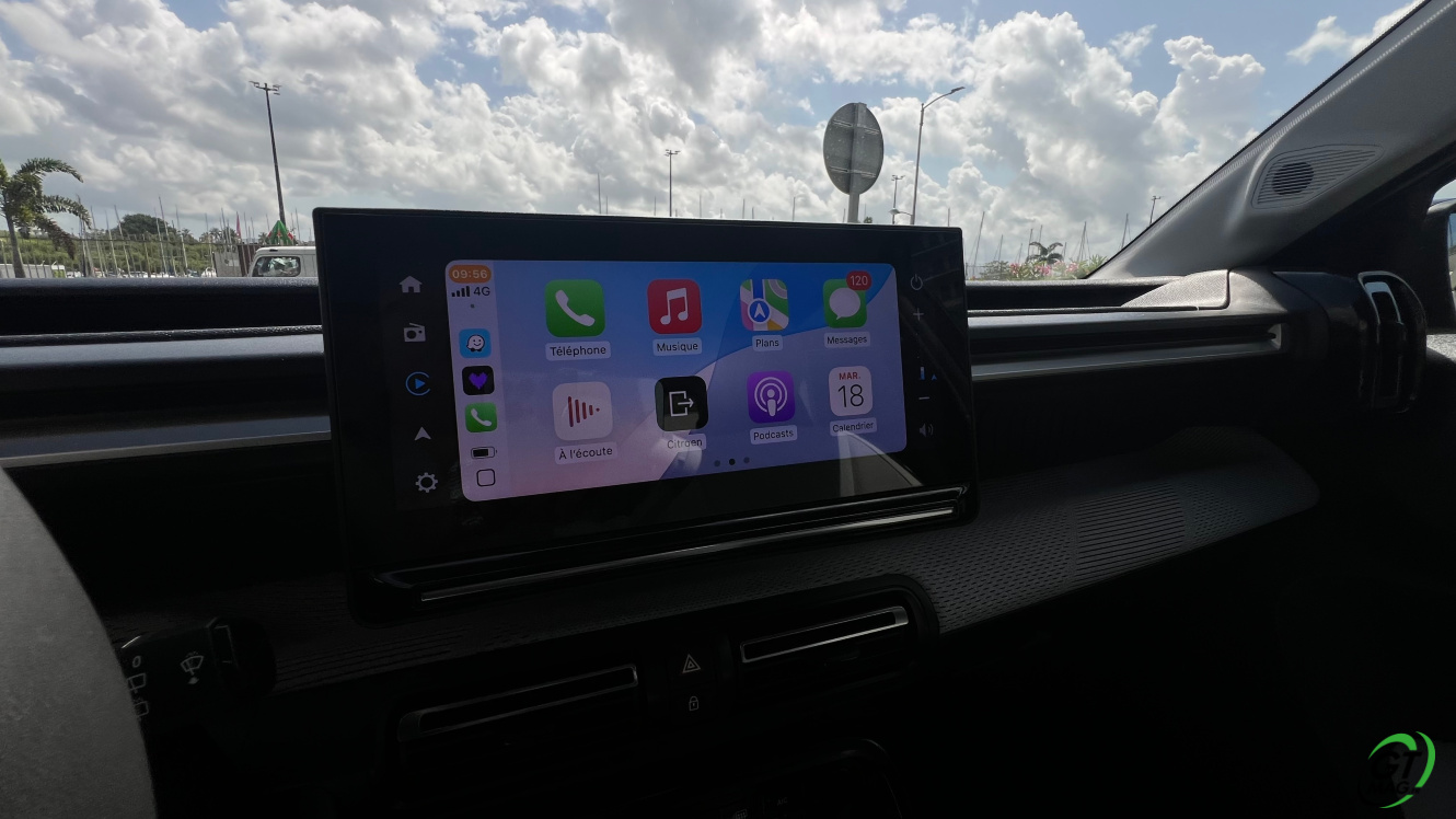 L’intérieur a été entièrement repensé pour offrir un confort optimal. Les sièges, inspirés de ceux du modèle C4, bénéficient d’un nouveau rembourrage, offrant un excellent soutien pour les longs trajets, disponible sur le niveau Max. La qualité des matériaux a été revue à la hausse, tout comme la position de conduite. Par ailleurs, elle dispose d’un petit volant, au-dessus duquel le conducteur peut contrôler les compteurs. Cependant, la qualité des plastiques fait les frais des réductions de coûts. Une bande textile qui recouvre la planche de bord permet de sauver cet habitacle d’une ambiance trop austère. Le coffre est vaste, avec ses 310 litres. Son accès n’est pas aisé et les sièges arrière ne sont pas modulables. L’habitacle dispose d’un écran tactile central de 10 pouces, intégrant le système d’infodivertissement Citroën Connect, compatible avec Apple CarPlay et Android Auto.