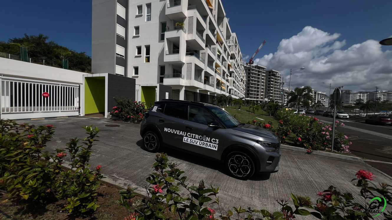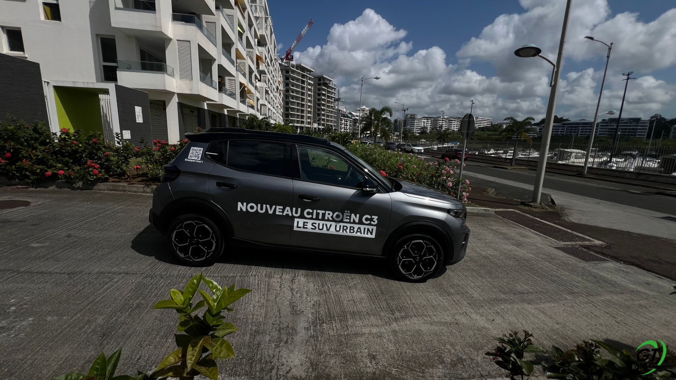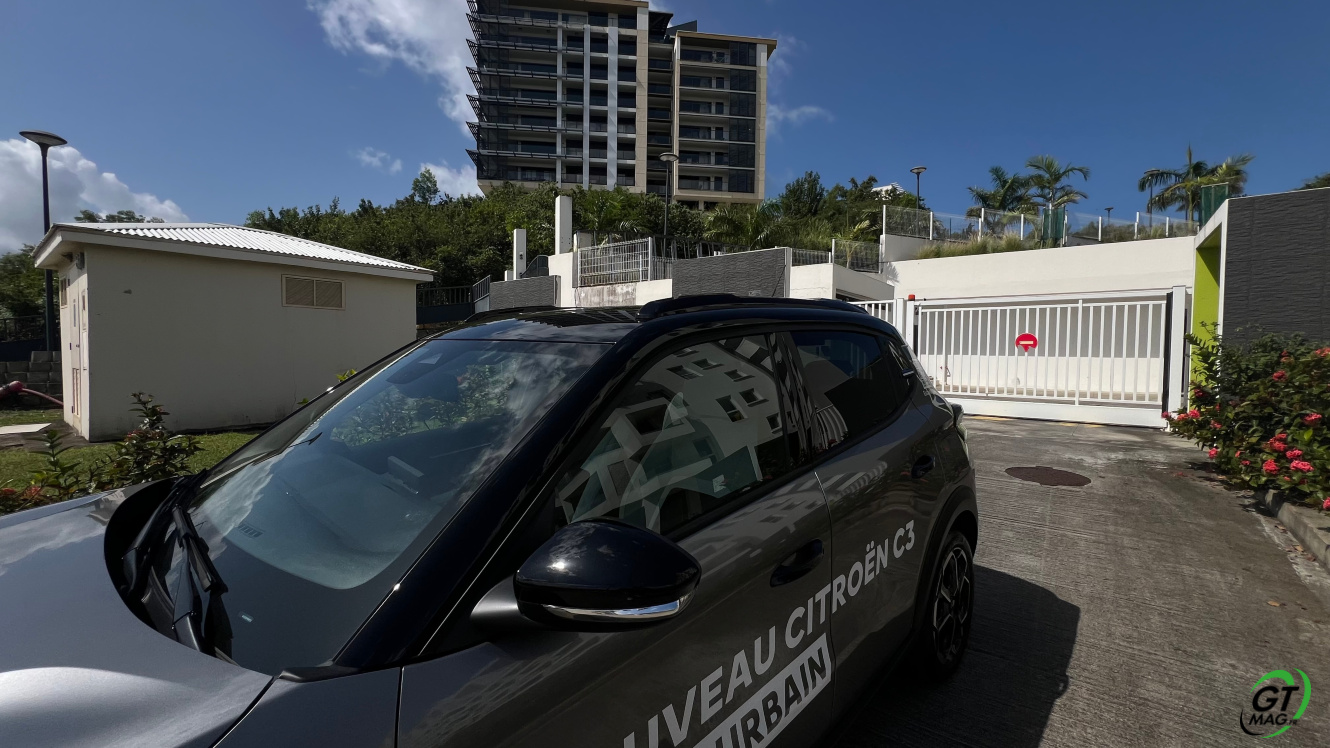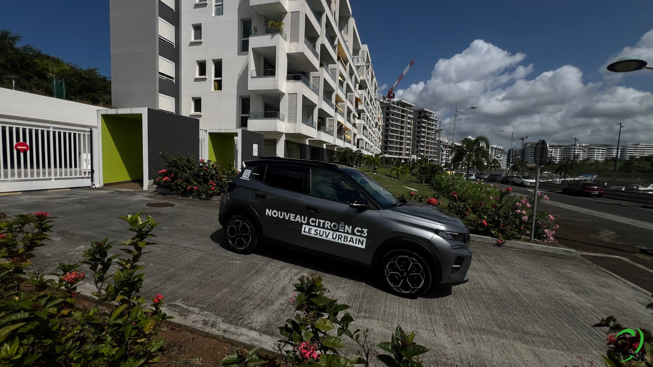 La citadine aux chevrons intègre de nombreuses technologies de sécurité et d’assistance à la conduite. Parmi celles-ci, le régulateur de vitesse adaptatif, le freinage d’urgence automatique, la reconnaissance des panneaux de signalisation et l’alerte de franchissement de ligne. Citroën a également équipé la C3 de son système Advanced Comfort on l’a vu, qui comprend des suspensions avec butées hydrauliques progressives, offrant une conduite douce sur toutes les surfaces. En Martinique cette version haute en options “Max” de notre essai est proposée à partir de 26270 euros… Sur la route du coup on est bien à bord d’une Citroën avec comme première intention le confort sûr et bienvenu chez nous et notre réseau routier secondaire… En ville, sa maniabilité et sa compacité permettent de se faufiler aisément dans la circulation. Le moteur répond à souhait dans toutes les sollicitations avec des relances plutôt étonnantes à bas régime. La consommation était également le souci des ingénieurs de la marque aux chevrons : comptez 5,4 litres aux 100 kilomètres…