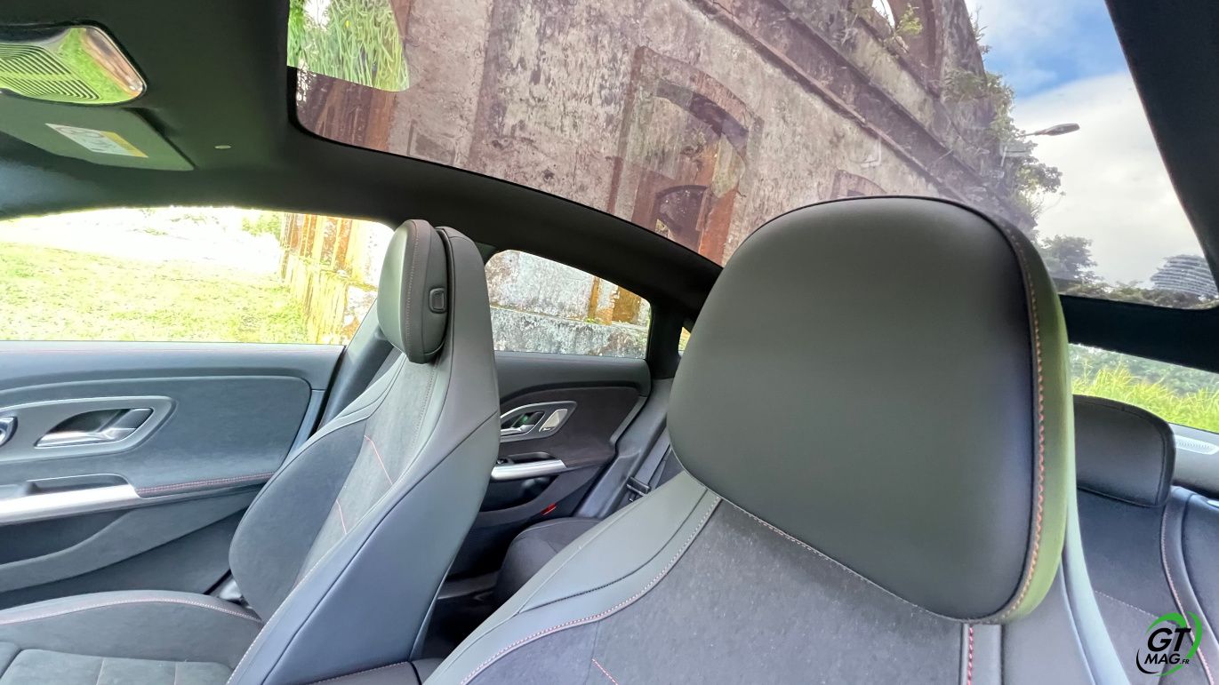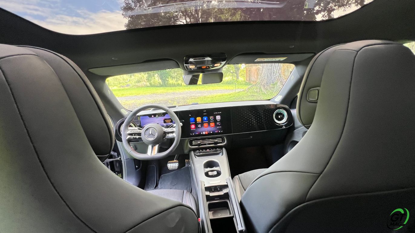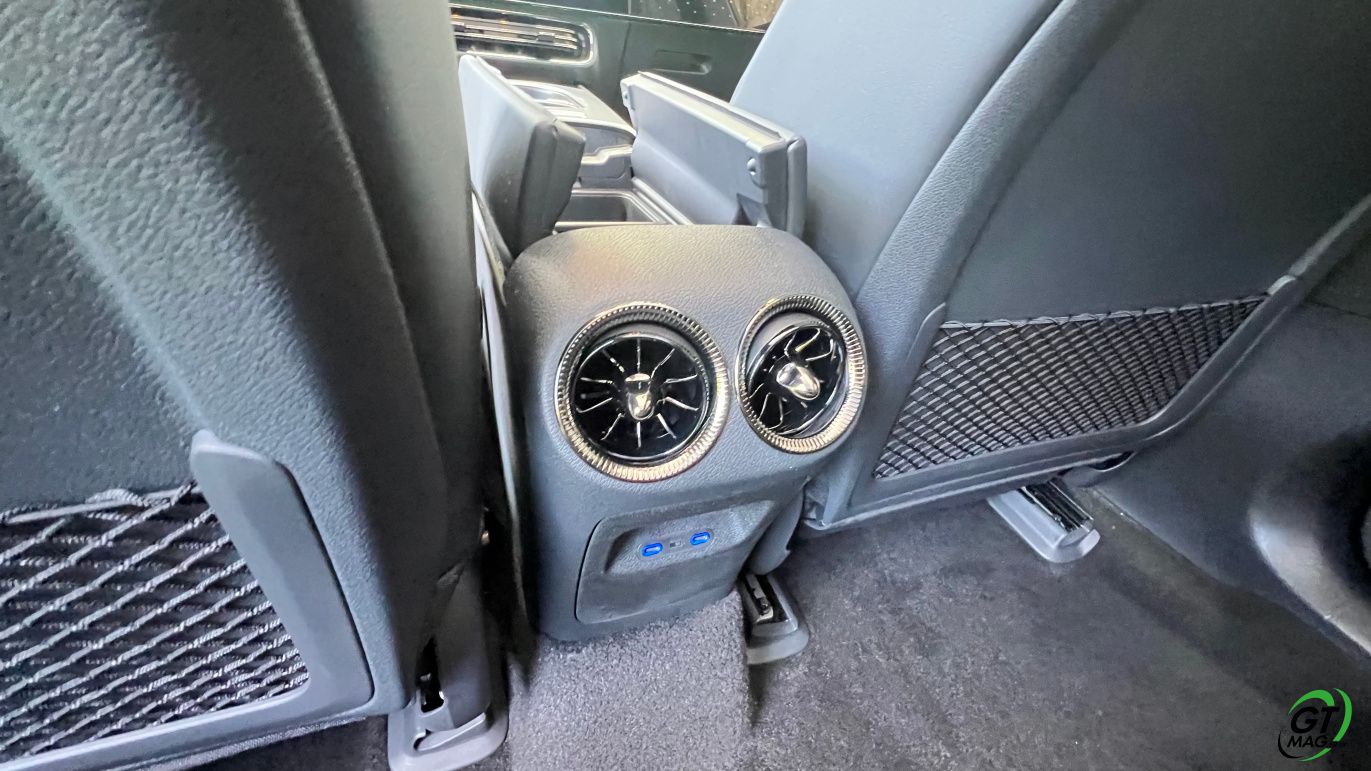 L’écran en lui-même est plutôt bien structuré, mais son fonctionnement diffère des systèmes Mercedes actuels. En effet, plutôt qu’un menu principal divisé en catégories, toutes les applications et menus sont regroupés dans un grand tiroir, à la manière d’un smartphone. La commande de la climatisation se fait également via l’écran, mais reste constamment visible. Sur la console centrale, seuls quelques boutons restent présents : ce sont ceux destinés aux modes de conduite, aux caméras de stationnement, à la désactivation de l’écran, aux feux de détresse, à l’assistant vocal et au volume. Les deux pavés tactiles sur le volant, qui permettaient auparavant de contrôler l’écran conducteur à gauche et l’infodivertissement à droite, ont disparu. Le volant, lui, sera prochainement mis à jour, puisqu’un tout nouveau modèle a fait ses débuts sur la Mercedes CLA avec… de vraies molettes physiques pour le volume et le régulateur de vitesse !