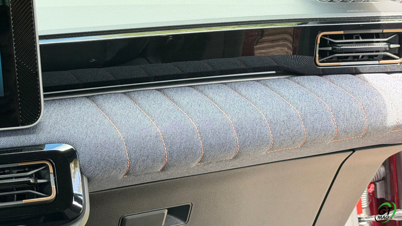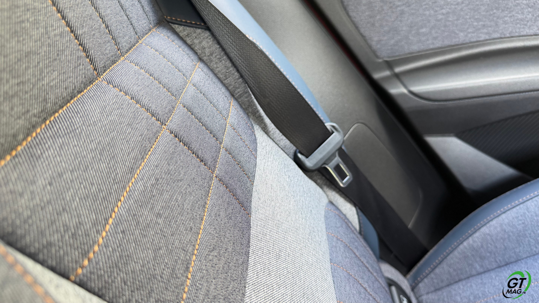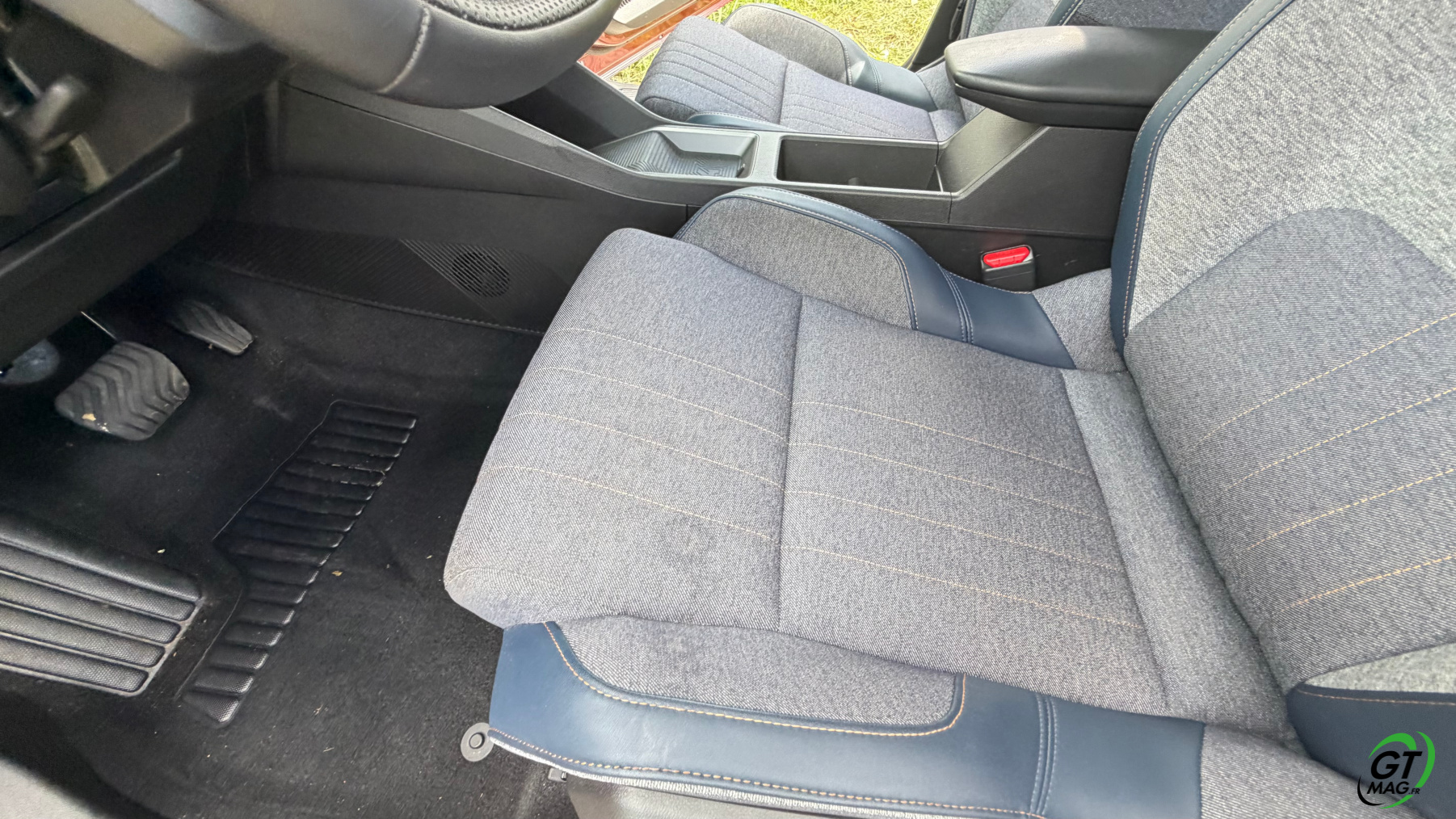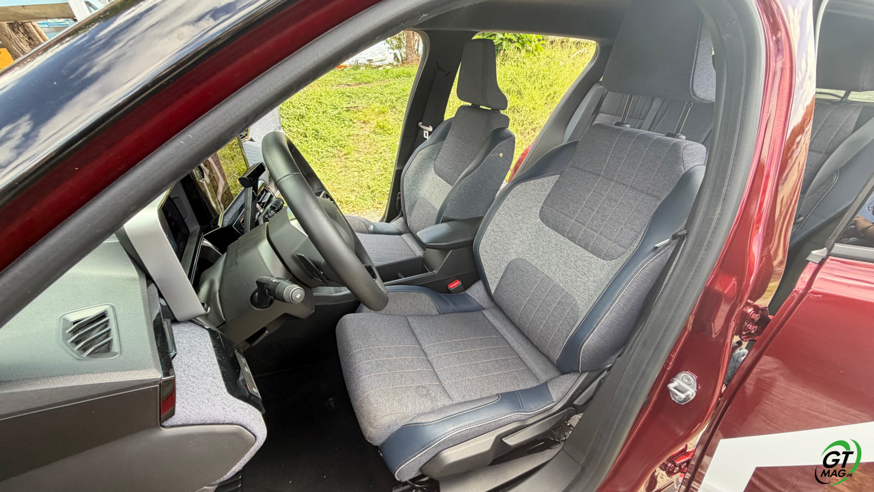 Notre version de la Renault 4 E-Tech se distingue grâce à des jantes alliage 18 pouces diamantées noires Sixties, une antenne requin plus moderne, ainsi que des barres de toit longitudinales en aluminium noir, à la fois esthétiques et pratiques. La sellerie adopte un look plus recherché, avec un textile 100 % recyclé façon jean matelassé, contrasté par un textile refined bleu foncé et des surpiqûres cuivrées apportant une touche chaleureuse. L’ambiance intérieure gagne en sophistication grâce à l’éclairage à LED, y compris un éclairage d’ambiance 3 zones, qui contribue à un ressenti plus haut de gamme, notamment la nuit.