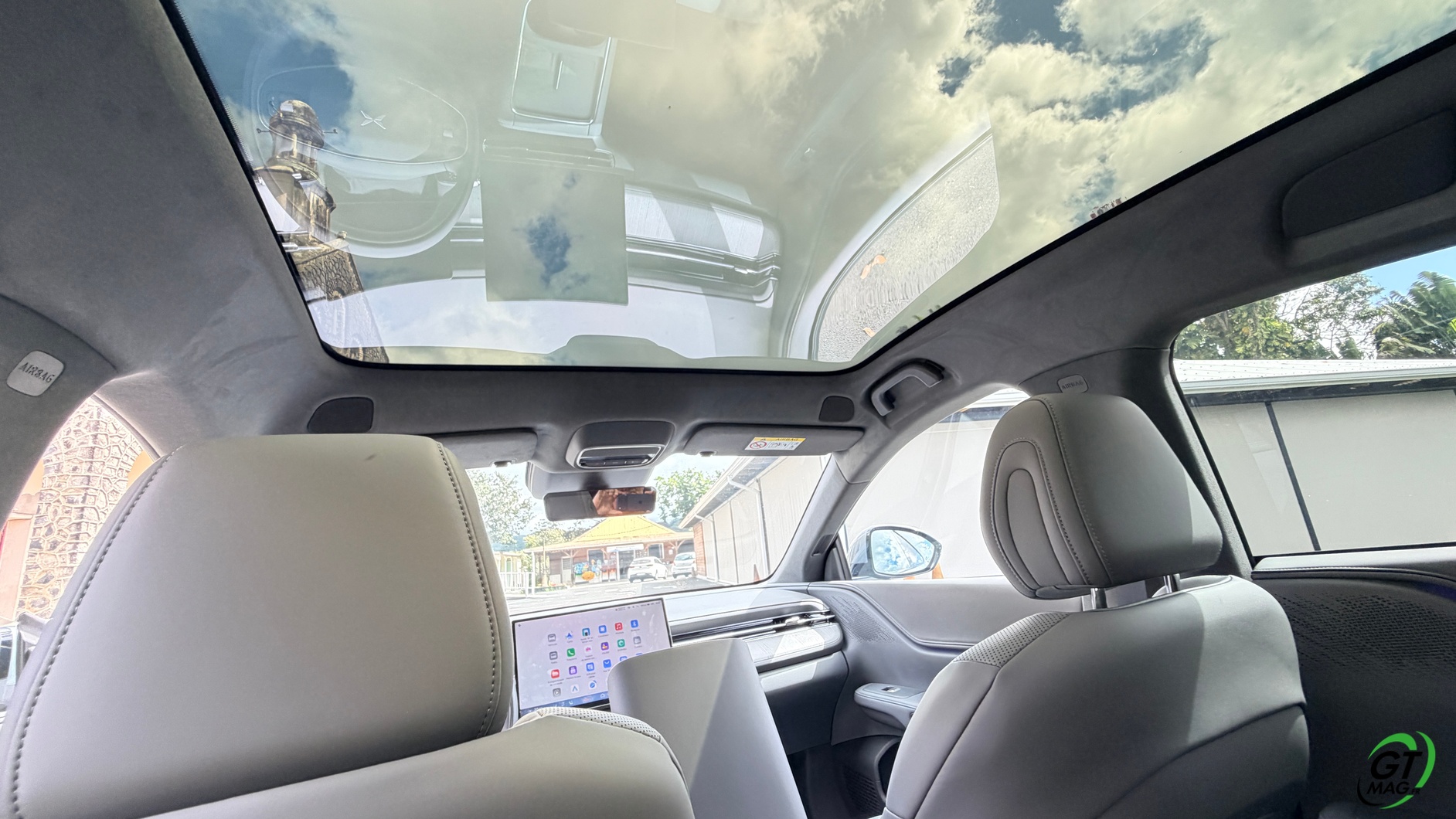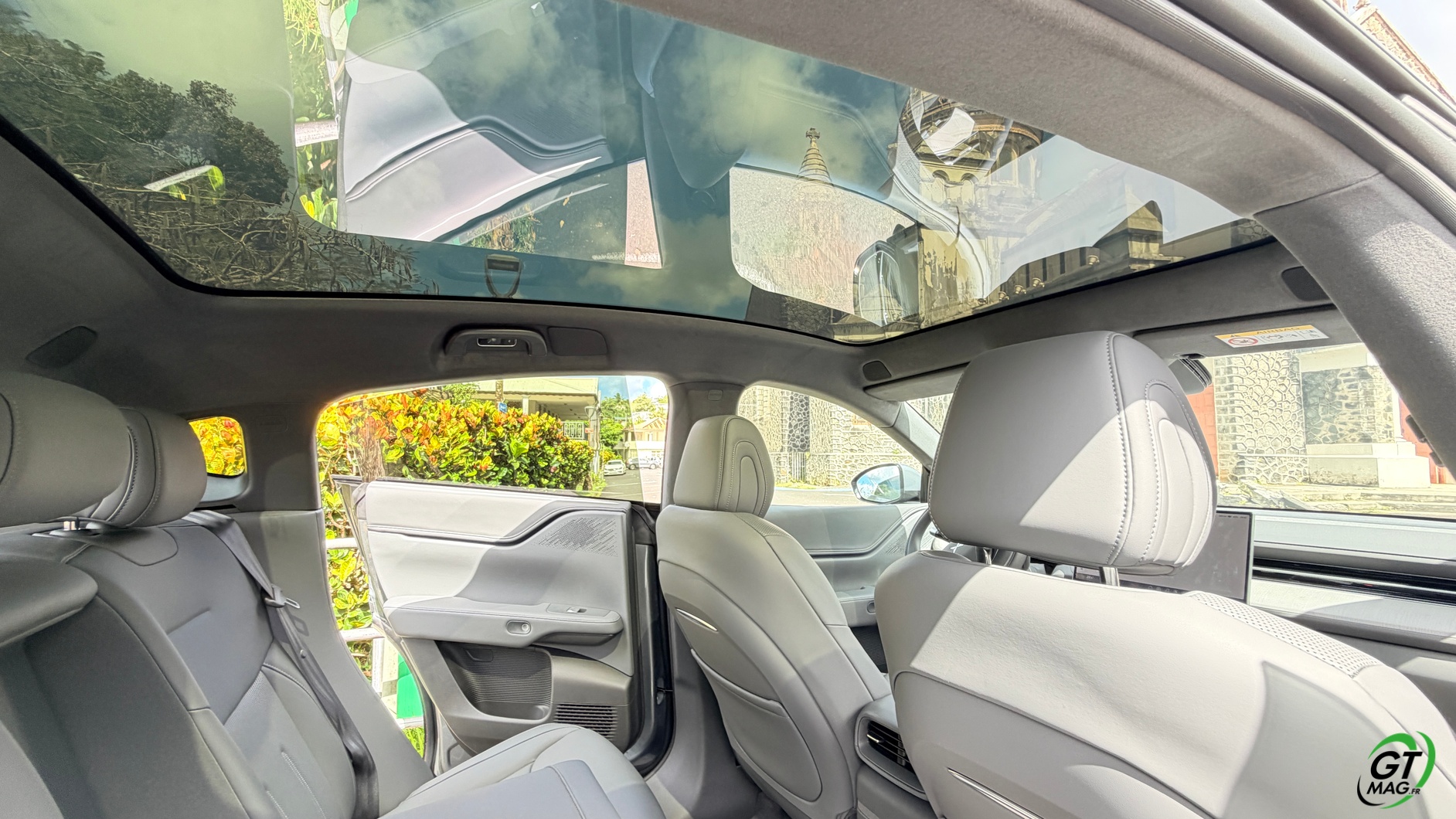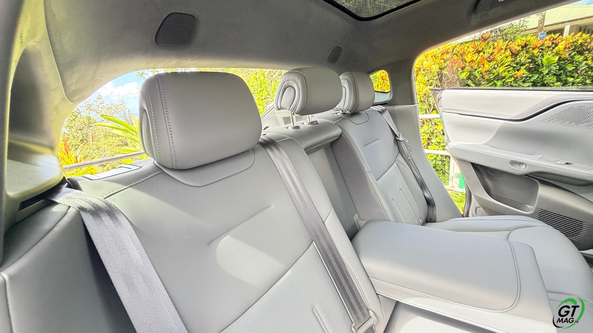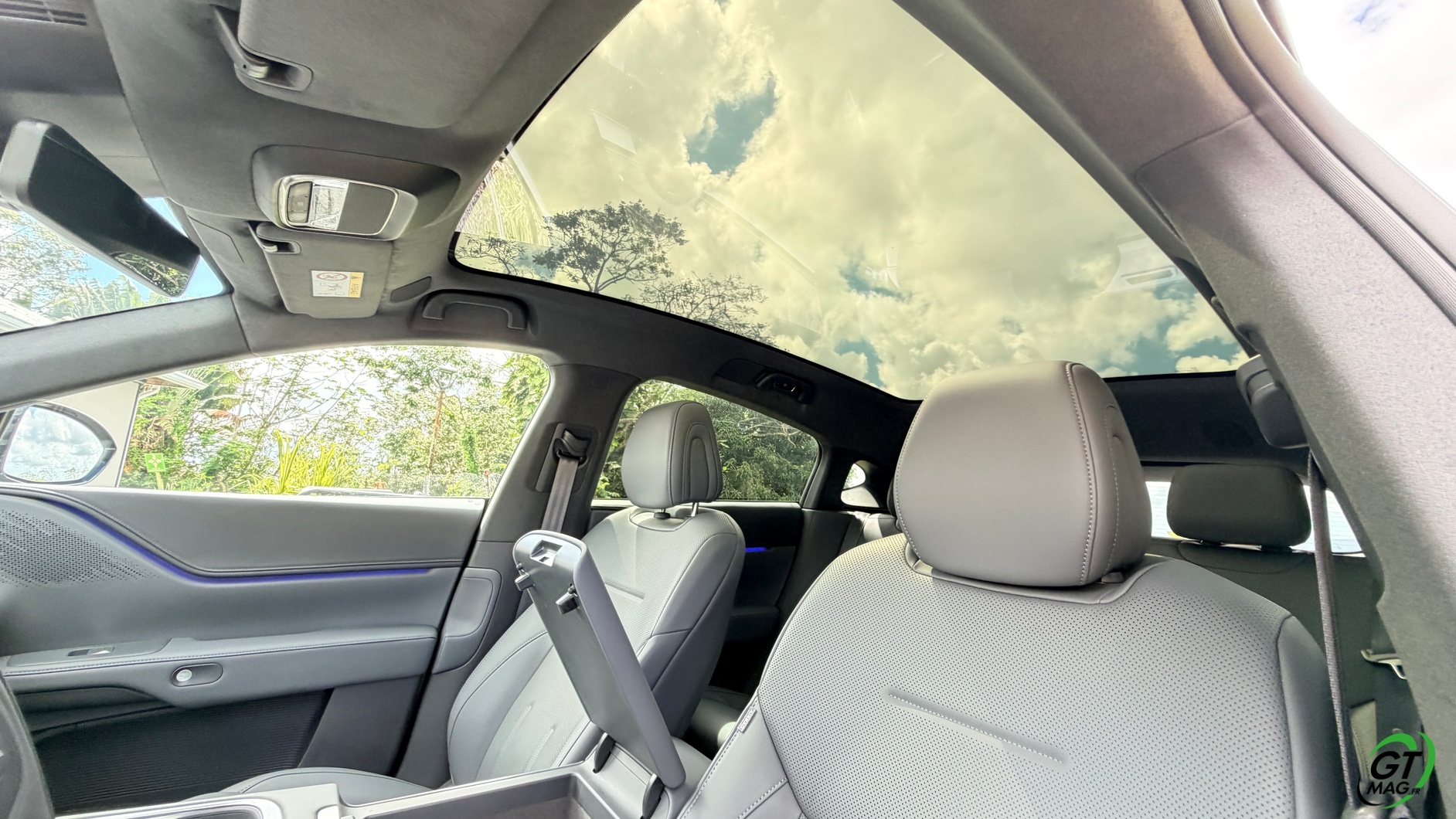La dalle derrière le volant mesure 10,25 pouces et peut être personnalisée selon les envies du conducteur : Waze, streaming (type Spotify), GPS natif, aides à la conduite, etc. La dalle passe à 15,6 pouces sur le modèle 2025 et notre essai. De plus, la Xpeng G6 Performance 2025 peut être entièrement gérée depuis un smartphone grâce à une application simple d’utilisation, permettant de consulter la charge, l’autonomie et de commander certaines fonctions du véhicule. Les passagers arrière profitent d’un espace généreux aux jambes (grâce à l’absence de tunnel central), d’une assise moelleuse, d’un accoudoir confortable et d’un toit panoramique fixe de 2,12 m². Les dossiers peuvent s’incliner de 11 degrés pour améliorer le confort.