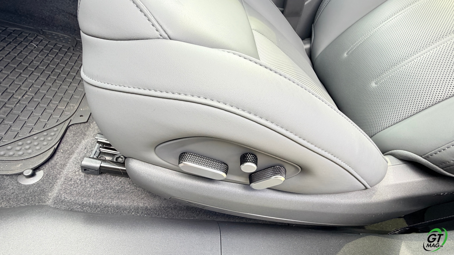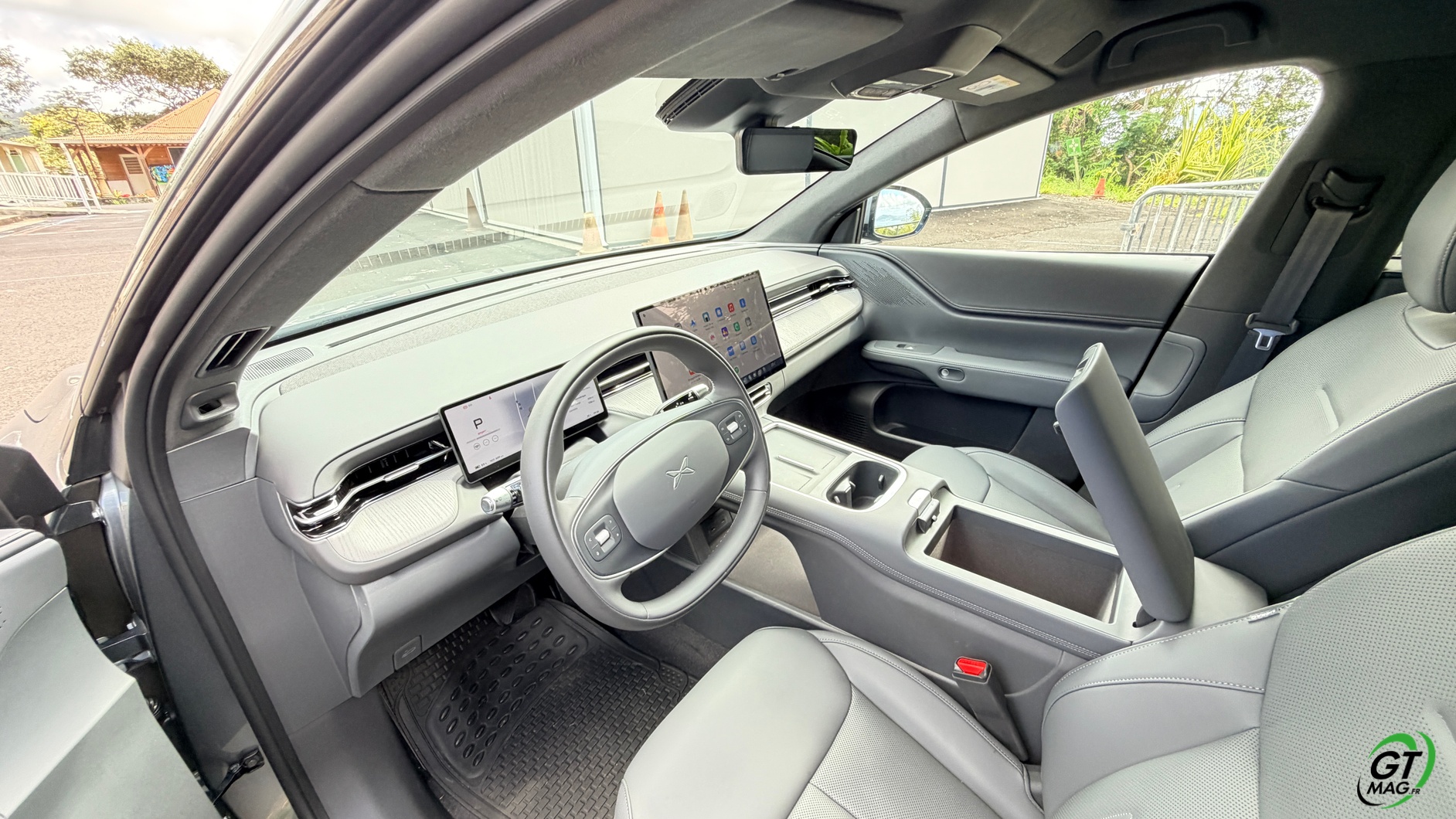 A l’intérieur Xpeng propose deux ambiances : cuir nappa blanc ou, comme sur notre modèle, cuir nappa gris anthracite.