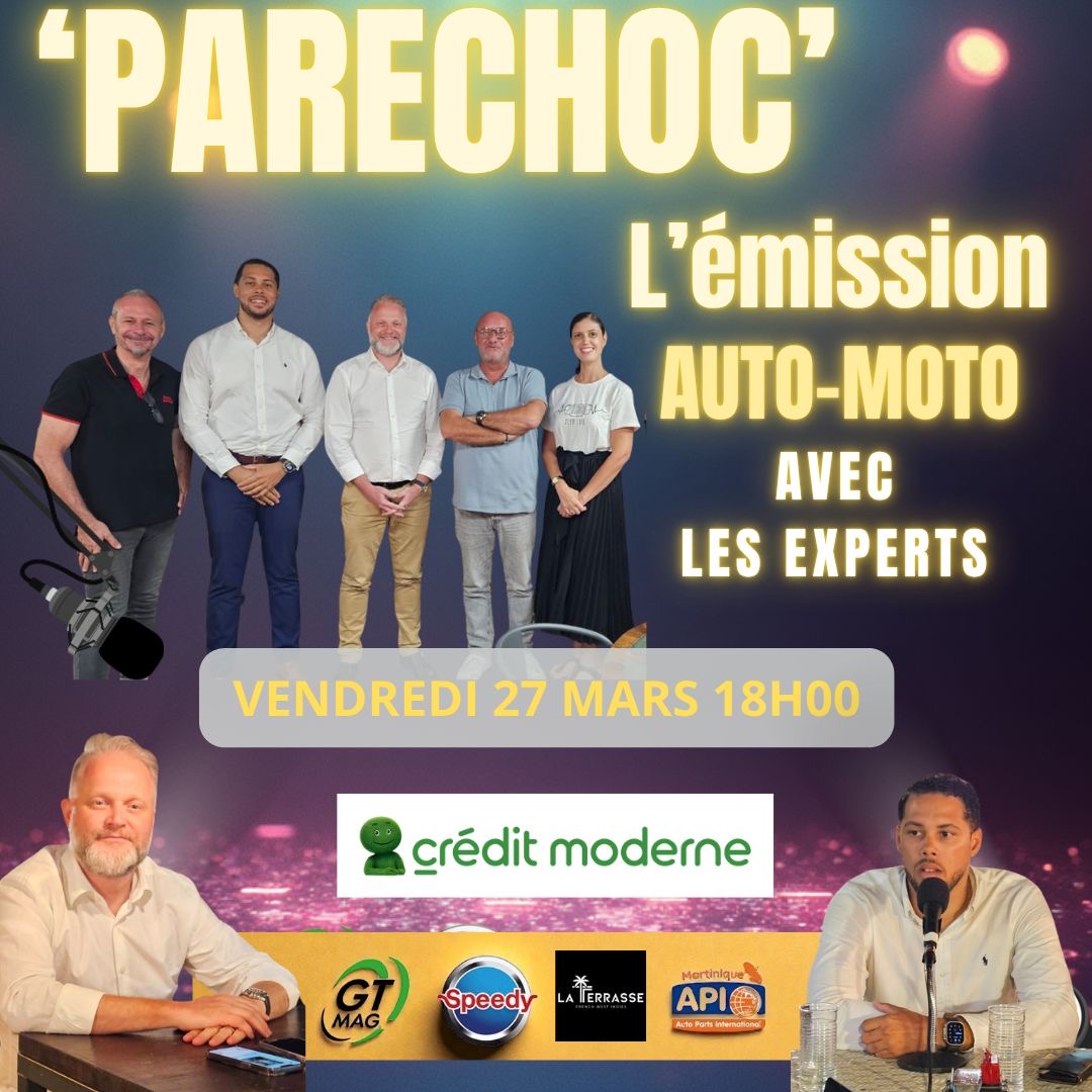 Vendredi soir à 18h00 retrouvez Parechoc L'émission avec www.gtmag.fr depuis le restaurant bar tapas La Terrasse FWI !!! JM de la bande à JM avec Éric Rouget et #vanillelemoulliec recevrons en fil rouge #BMWMartinique nous aurons la présence sur notre plateau #YannWoisson nouveau directeur de la marque Allemande pour la #Martinique, la #Guadeloupe et #SaintMartin… Nous reparlerons de nos essais #BMWX1 et #BMWX2 réalisés sur notre magazine mais aussi de la gamme #BMW proposée sur nos îles… Un peu plus tard nous recevrons #JimAdélaïde Président Fondateur du Groupe #FreeAuto…. Tout savoir sur notre émission et la voir vendredi c’est ici :